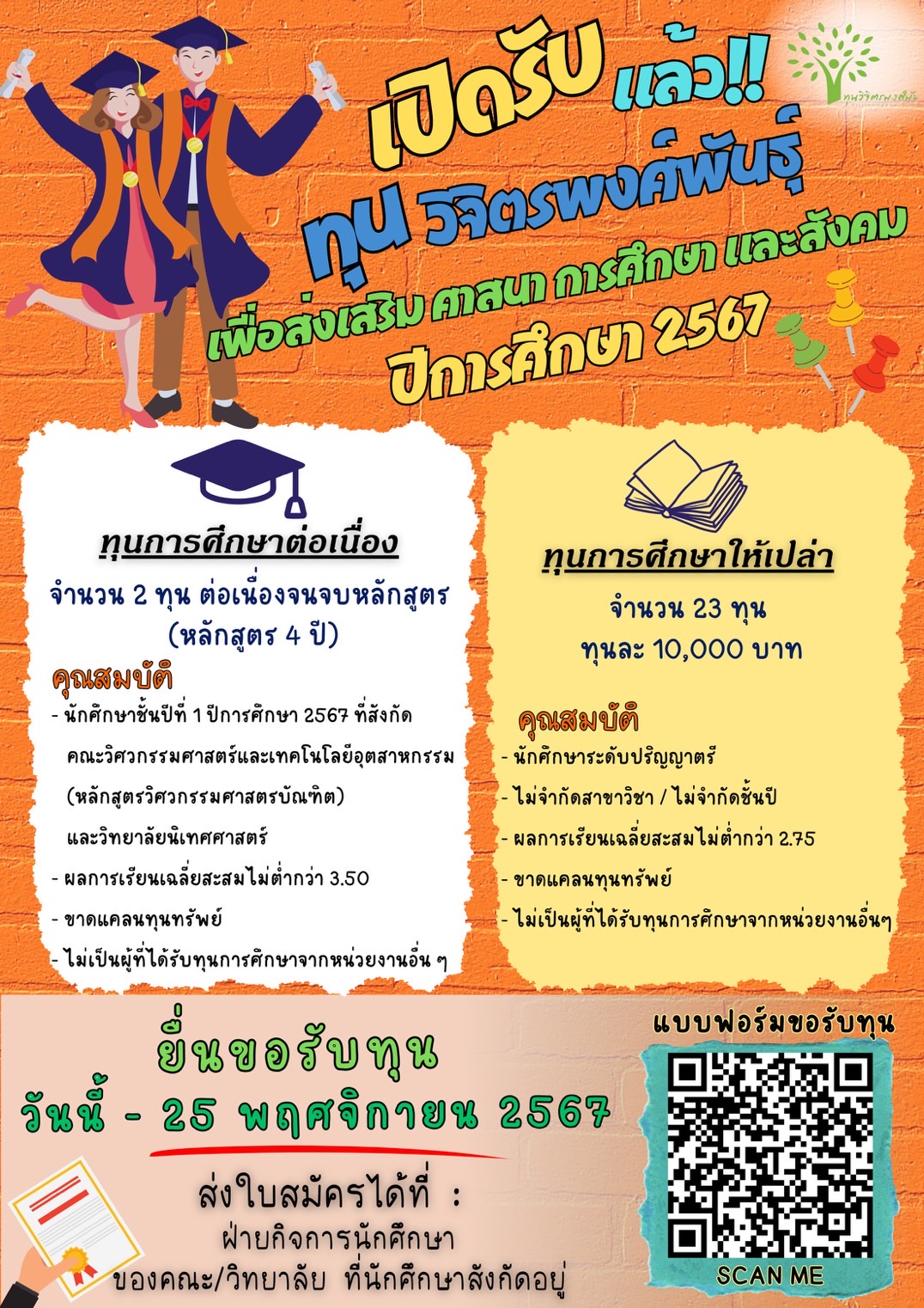 กองพัฒนานักศึกษาเปิดรับนักศึกษาขอรับทุนการศึกษา "ทุนวิจิตรพงศ์พันธุ์"