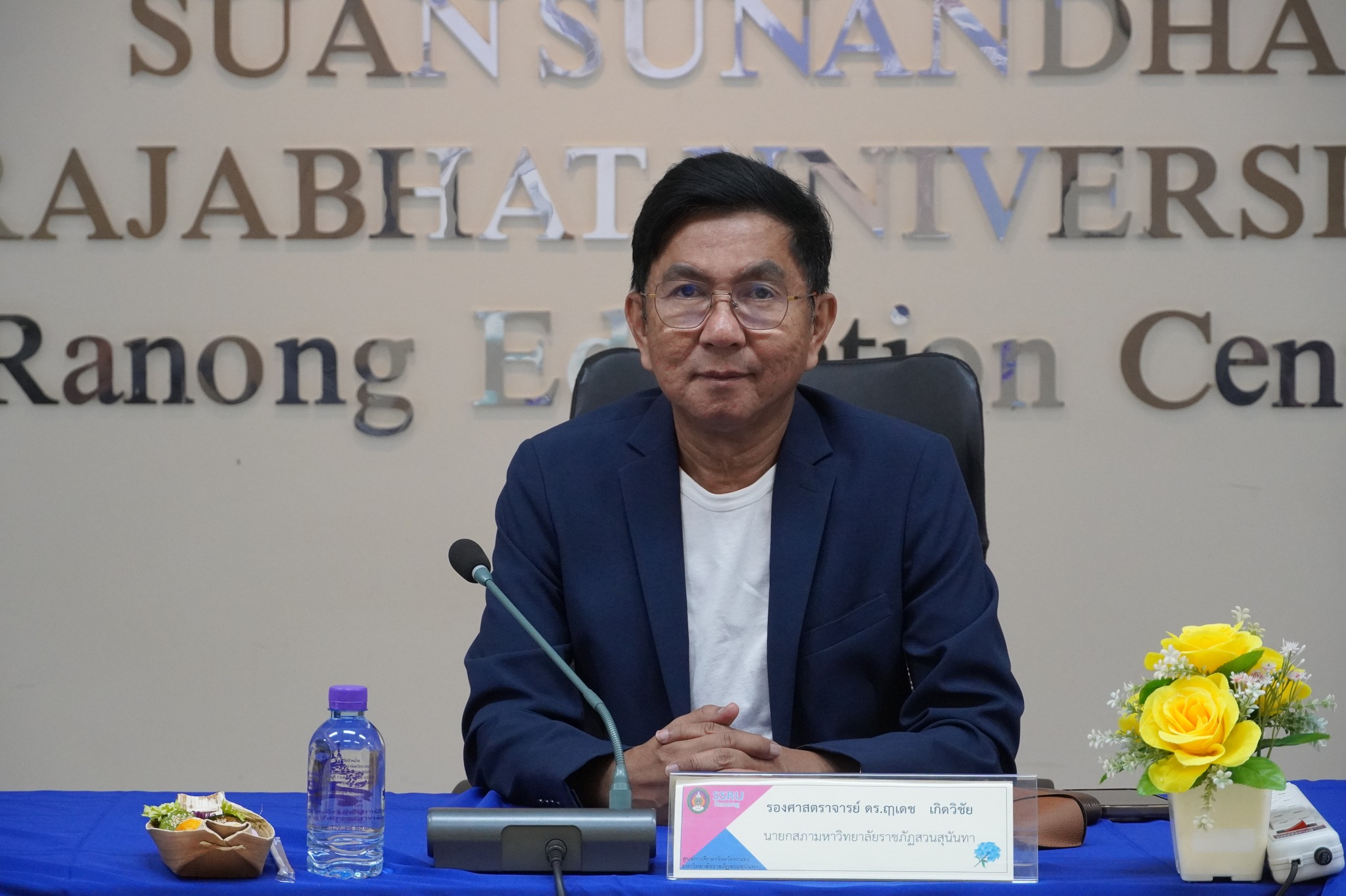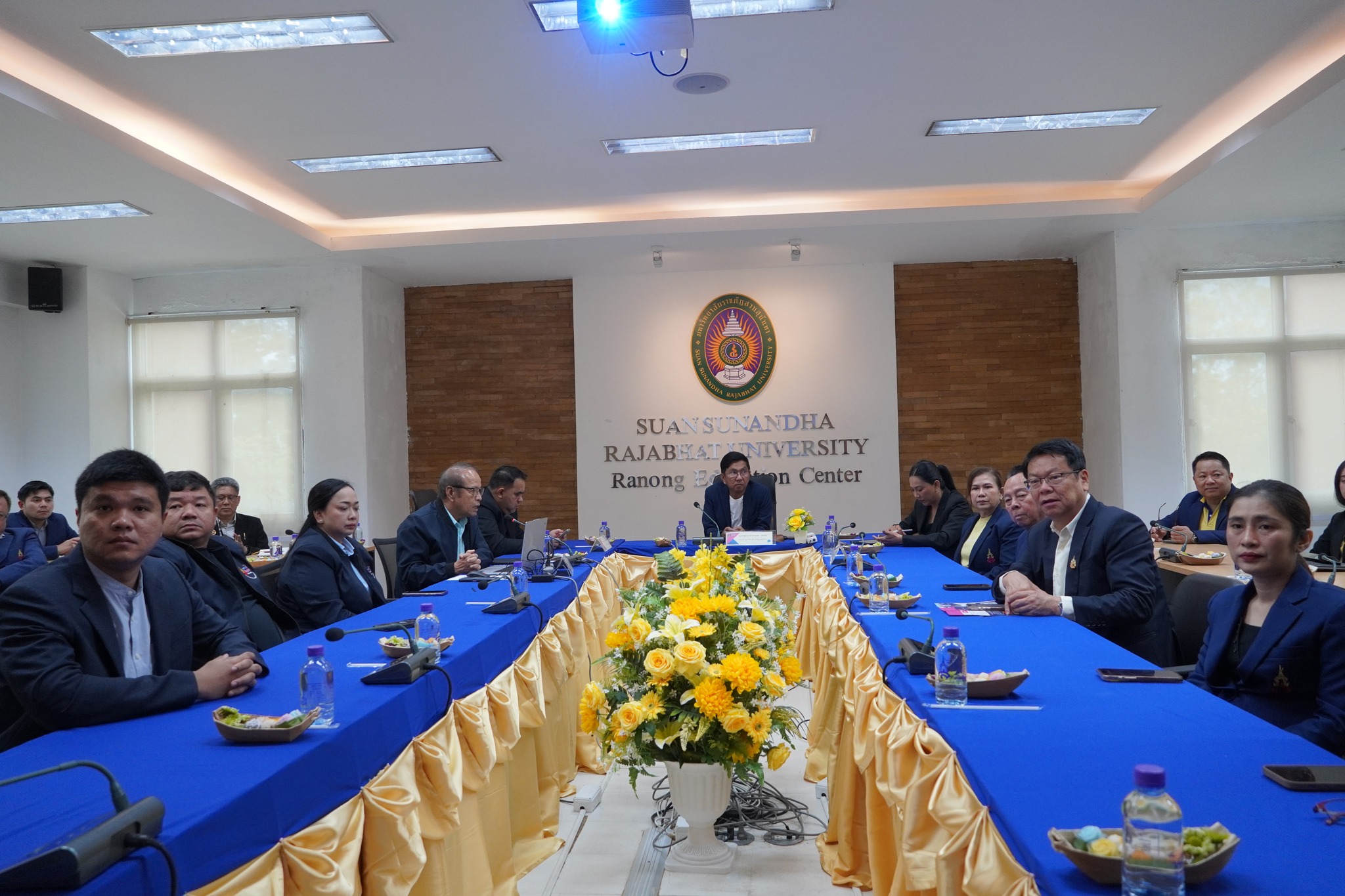 วันที่ 7 กรกฎาคม 2568 รองศาสตราจารย์ ดร.ฤๅเดช เกิดวิชัย นายกสภามหาวิทยาลัยราชภัฏสวนสุนันทา และรองศาสตราจารย์ ดร.ชุติกาญจน์ ศรีวิบูลย์ อธิการบดี เป็นประธานในการประชุมหารือแนวทางการพัฒนาศูนย์การศึกษาจังหวัดระนอง ณ ห้องประชุมลีลาวดี ศูนย์การศึกษาจังหวัดระนอง โดยได้รับเกียรติจากคณบดีจากวิทยาลัยภายในมหาวิทยาลัยราชภัฏสวนสุนันทาร่วมประชุมและเสนอแนะแนวทางในการพัฒนาศูนย์การศึกษาจังหวัดระนองในอนาคต โดยการประชุมนี้มีคณาจารย์ที่จัดการเรียนการสอนที่ศูนย์การศึกษาจังหวัดระนอง และบุคลากรสายสนับสนุนวิชาการเข้าร่วมรับฟัง