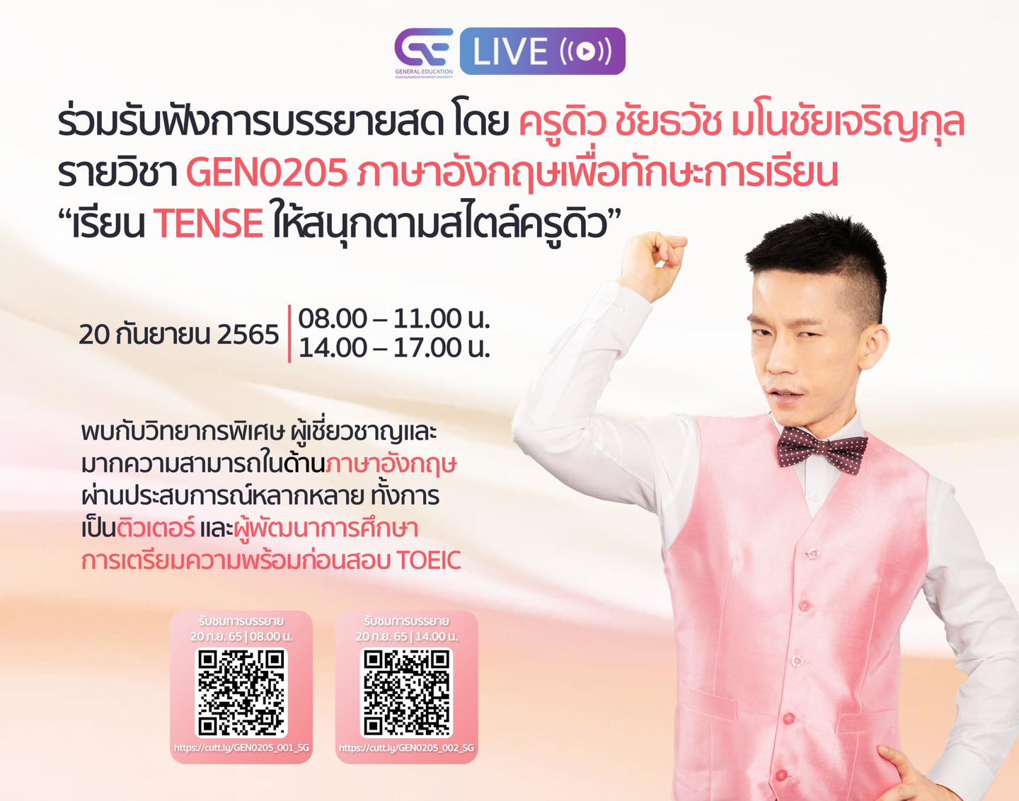 วันอังคาร ที่ 20 กันยายน 2565 ขอเชิญทุกท่าน ร่วมรับฟังการบรรยายสด "เรียน TENSE ให้สนุกตามสไตล์ครูดิว"