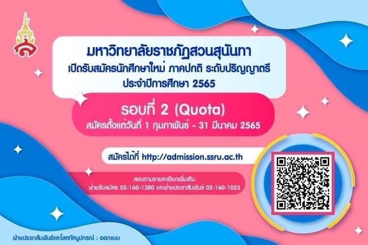 สมัครได้ที่ https://admission.ssru.ac.th/