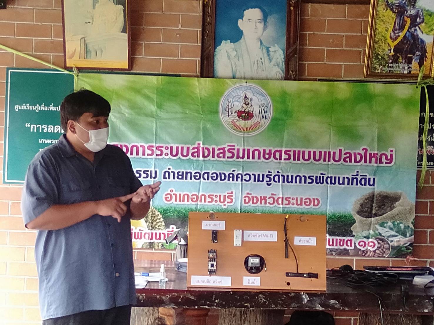 ช่วงบ่าย วันที่ 16 ธันวาคม 2565 นางอัญชัญ จงเจริญ ที่ปรึกษาผู้อำนวยการศูนย์การศึกษาจังหวัดระนอง พร้อมด้วยนายฐิติพงศ์ ศรวณีย์กุล วิทยากรระบบรดน้ำอัจฉริยะ ได้รับเกียรติจากสำนักงานเกษตรอำเภอกระบุรี ให้เป็นวิทยากรบรรยายเรื่องระบบรดน้ำอัจฉริยะให้แก่เกษตรกรศูนย์การเรียนรู้หมู่บ้านน้ำขาว ต.จปร จ.ระนอง ณ ที่ีทำการแปลงใหญ่ทุเรียน หมู่ 6 ต.จ.ป.ร.อำเภอกระบุรี จังหวัดระนอง ตามโครงการศูนย์เรียนรู้การเพิ่มประสิทธิภาพการผลิตสินค้าเกษตร กิจกรรมพัฒนาเกษตรกร กิจกรรมย่อย จัดกระบวนการเรียนรู้ให้กับเกษตรกรผู้นำ โดยมีวัตถุประสงค์เพื่อให้เกษตรกรผู้นำ และประธานศูนย์เครือข่าาย ศพก.สามารถถ่ายทอดความรู้และถ่ายทอดเทคโนโลยีการผลิตทางการเกษตรให้กับเกษตรกรรายอื่น ๆ ต่อไป