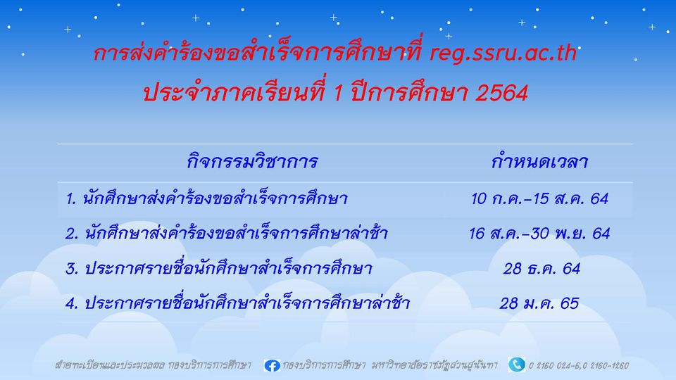 การส่งคำร้องขอสำเร็จการศึกษาที่ reg.ssru.ac.th ประจำภาคเรียนที่ 1 ปีการศึกษา 2564