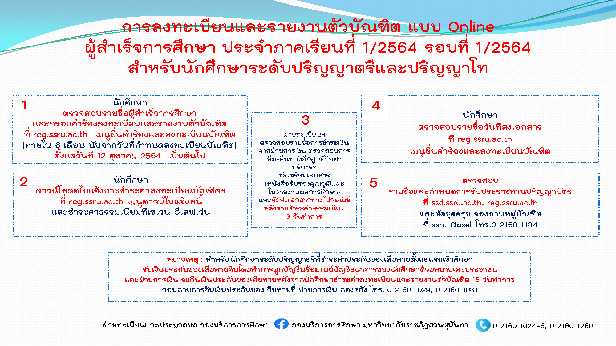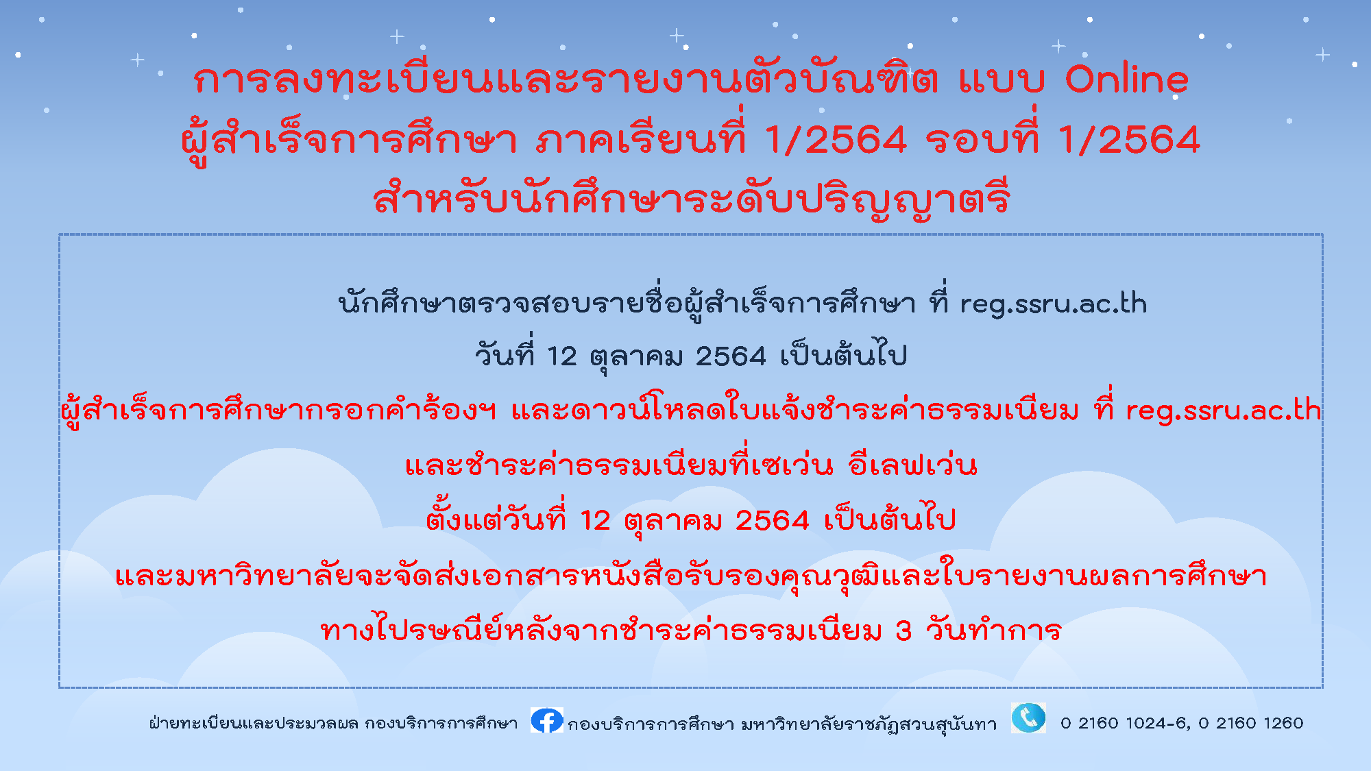 รอบที่ 1/2564 สำหรับนักศึกษาระดับปริญญาตรี และปริญญาโท ที่ reg.ssru.ac.th