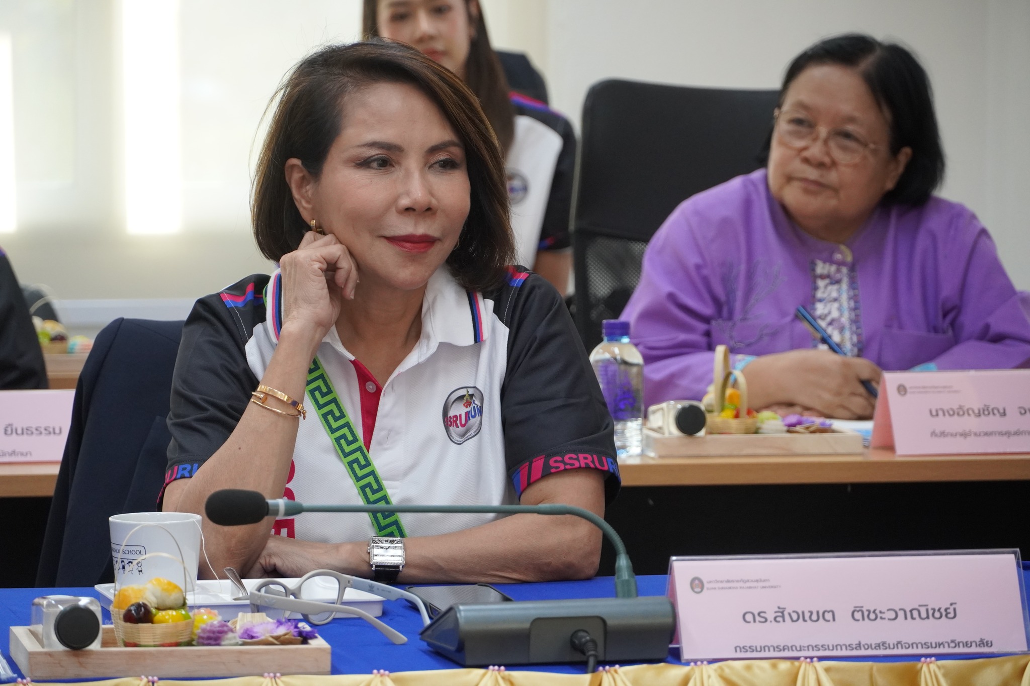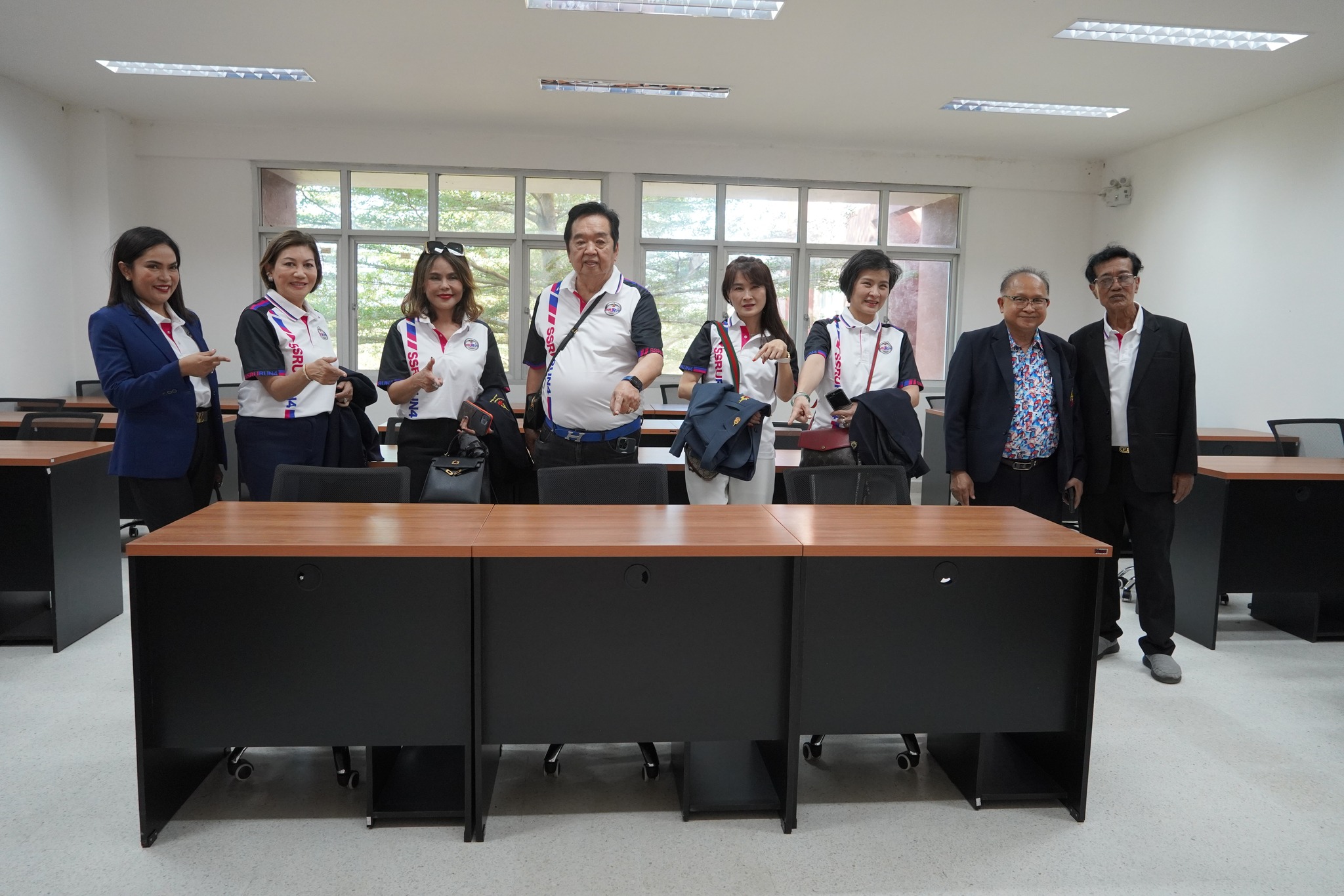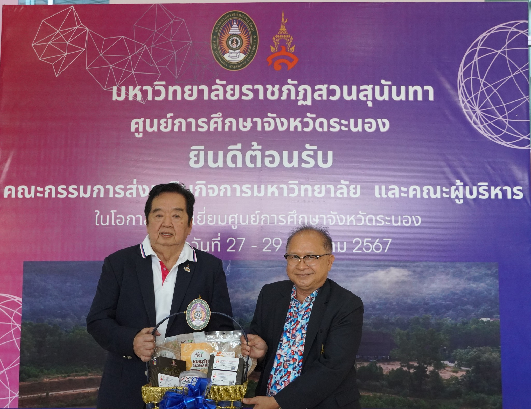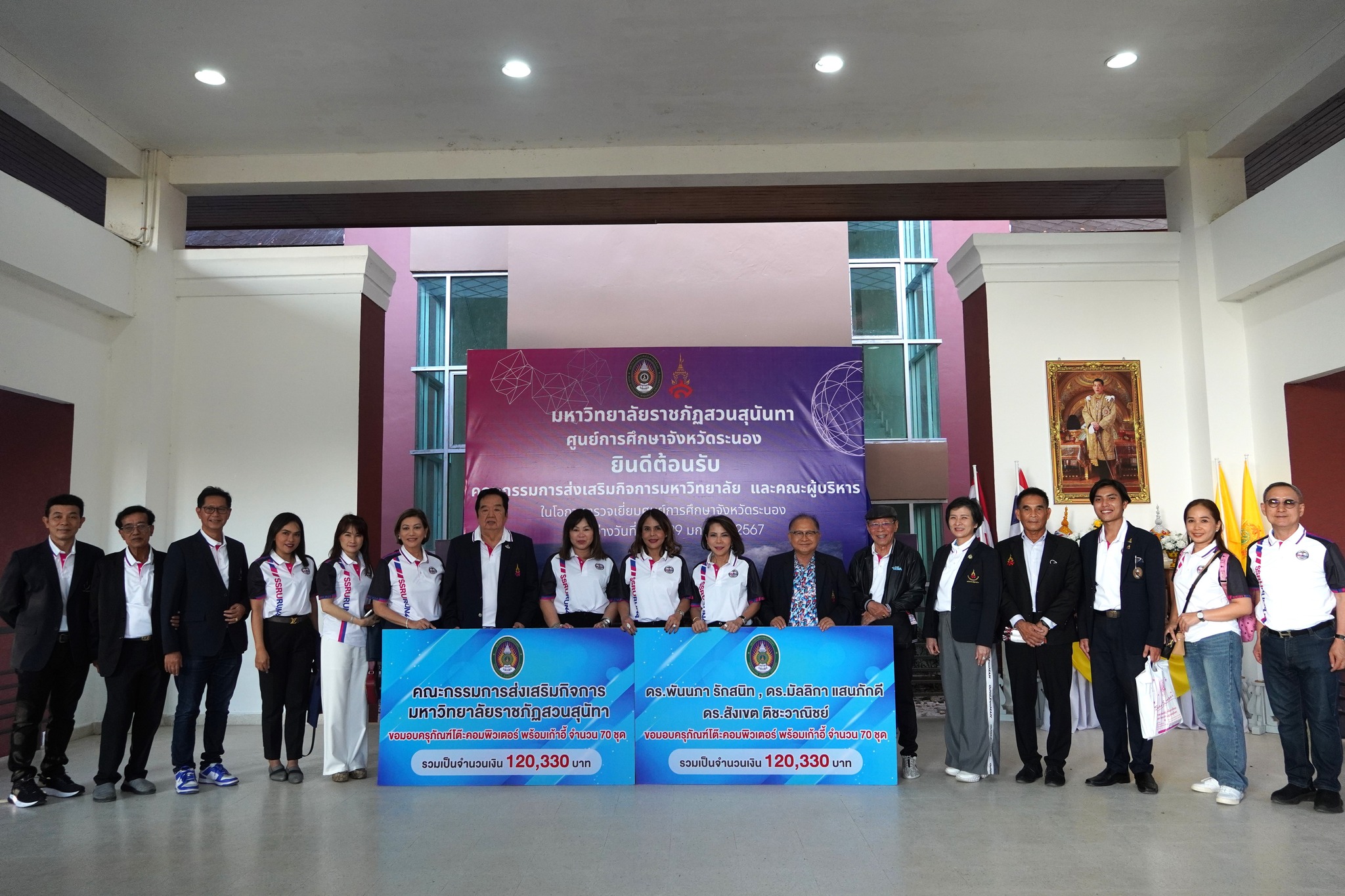หลังจากนั้นคณะกรรมการส่งเสริมฯได้ประชุมคณะกรรมการส่งเสริมกิจการมหาวิทยาลัย วาระพิเศษ ครั้งที่ 1/2567 และได้ร่วมกันมอบครุภัณฑ์โต๊ะคอมพิวเตอร์พร้อมเก้าอี้ จำนวน ๗๐ ชุด ให้แก่ศูนย์การศึกษาจังหวัดระนองได้ใช้ประโยชน์ในการจัดการเรียนการสอนต่อไป