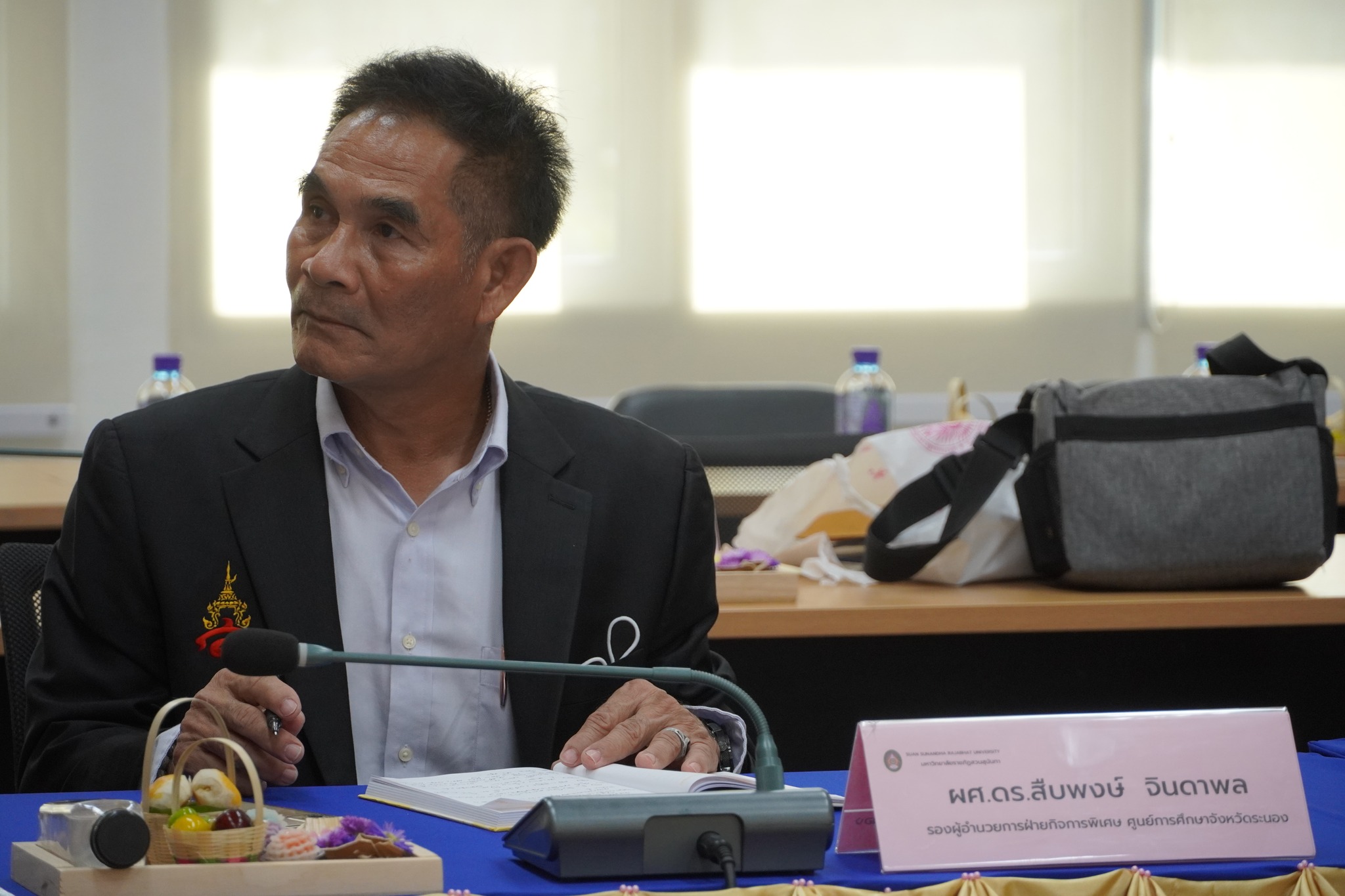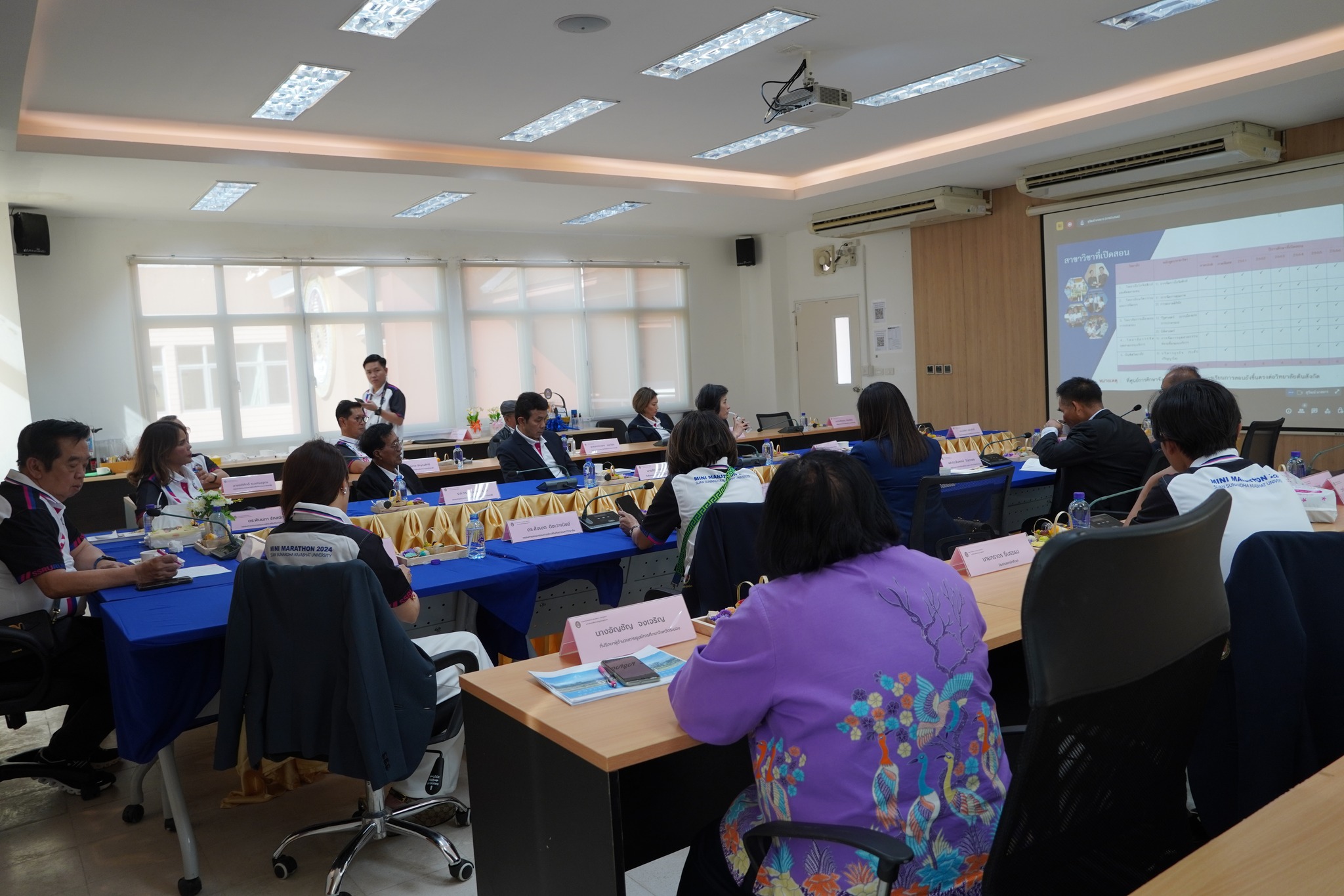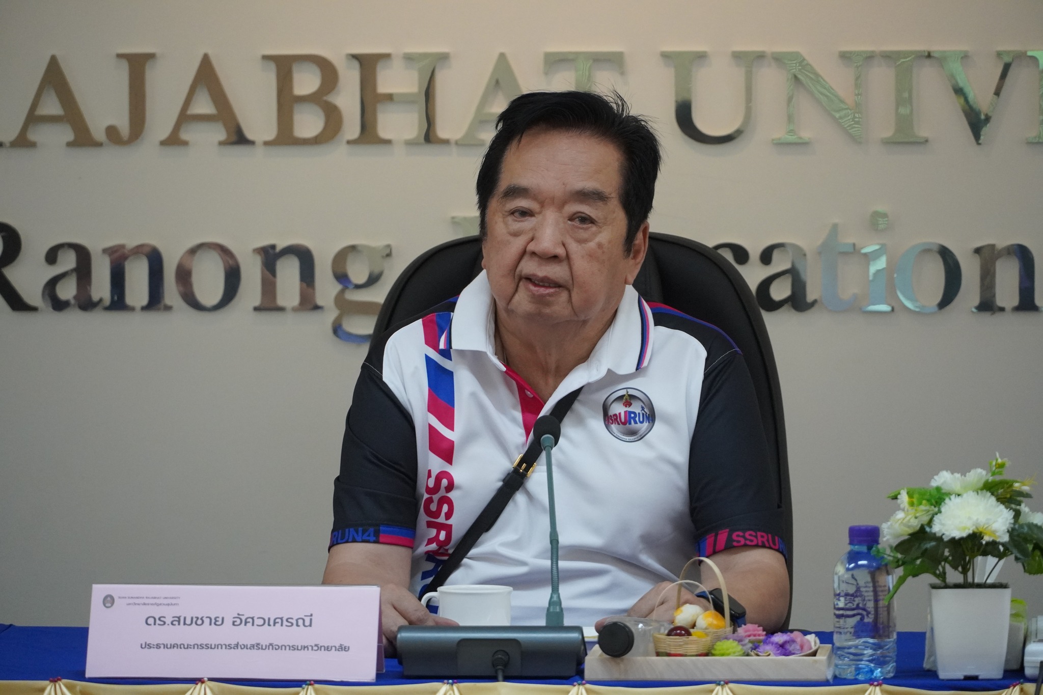หลังจากนั้นคณะกรรมการส่งเสริมฯได้ประชุมคณะกรรมการส่งเสริมกิจการมหาวิทยาลัย วาระพิเศษ ครั้งที่ 1/2567 และได้ร่วมกันมอบครุภัณฑ์โต๊ะคอมพิวเตอร์พร้อมเก้าอี้ จำนวน ๗๐ ชุด ให้แก่ศูนย์การศึกษาจังหวัดระนองได้ใช้ประโยชน์ในการจัดการเรียนการสอนต่อไป