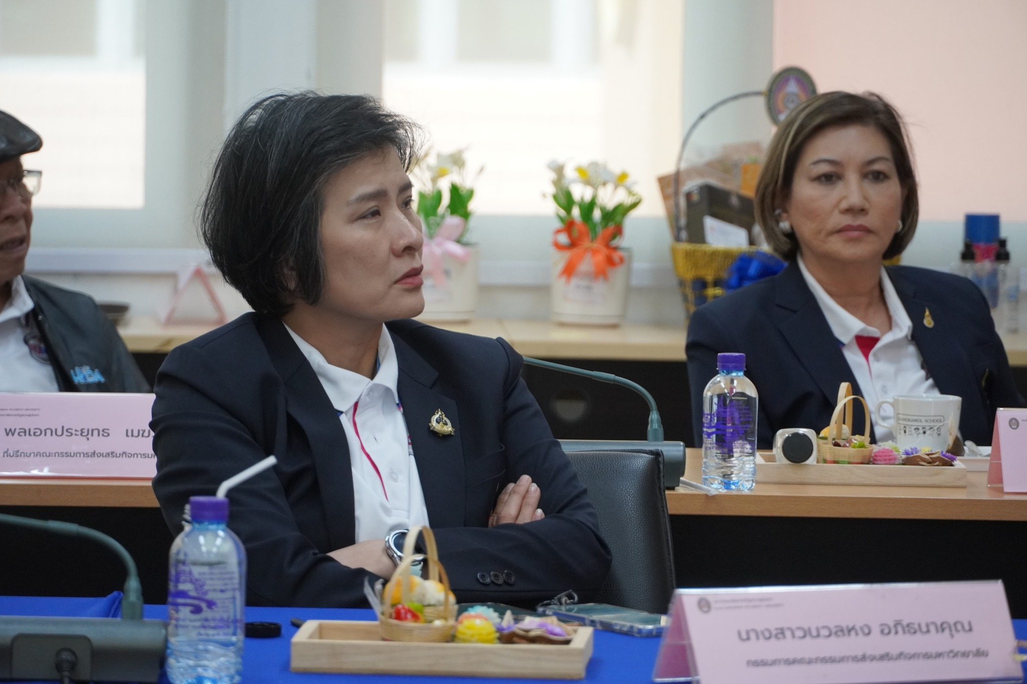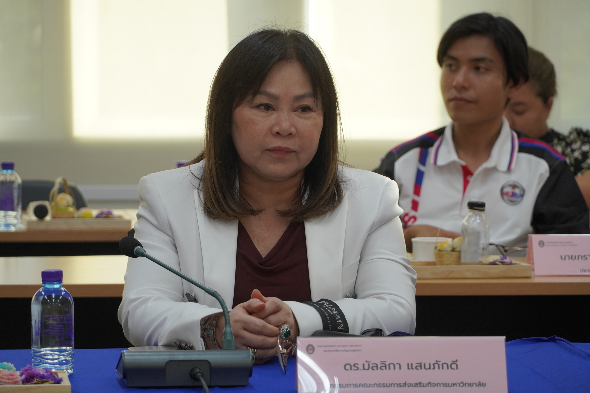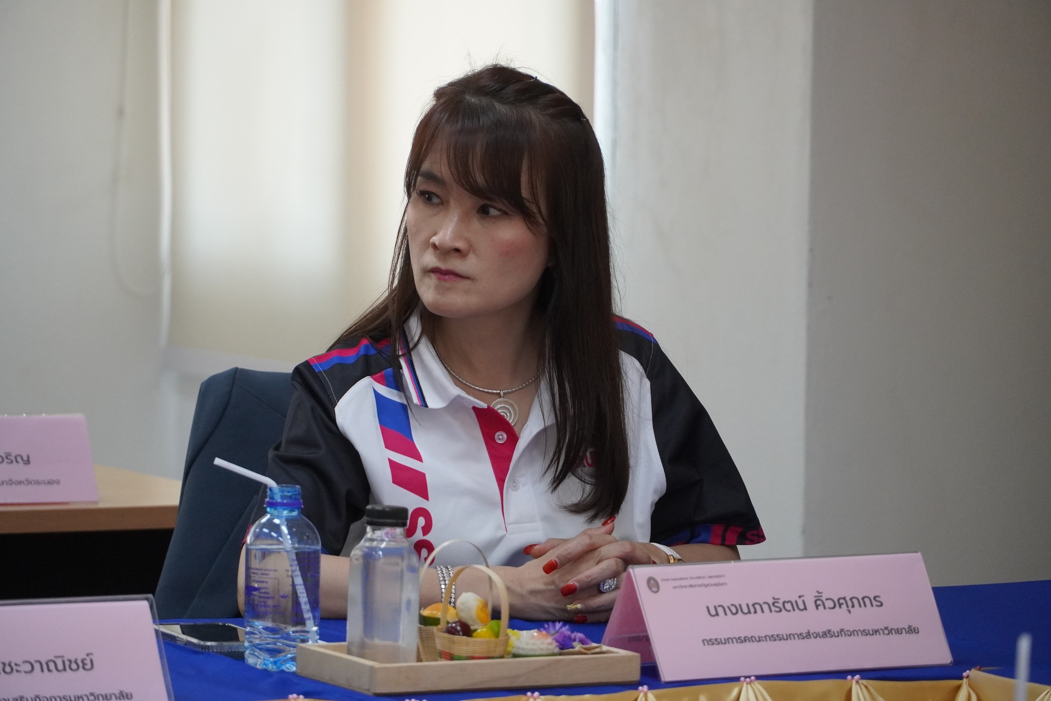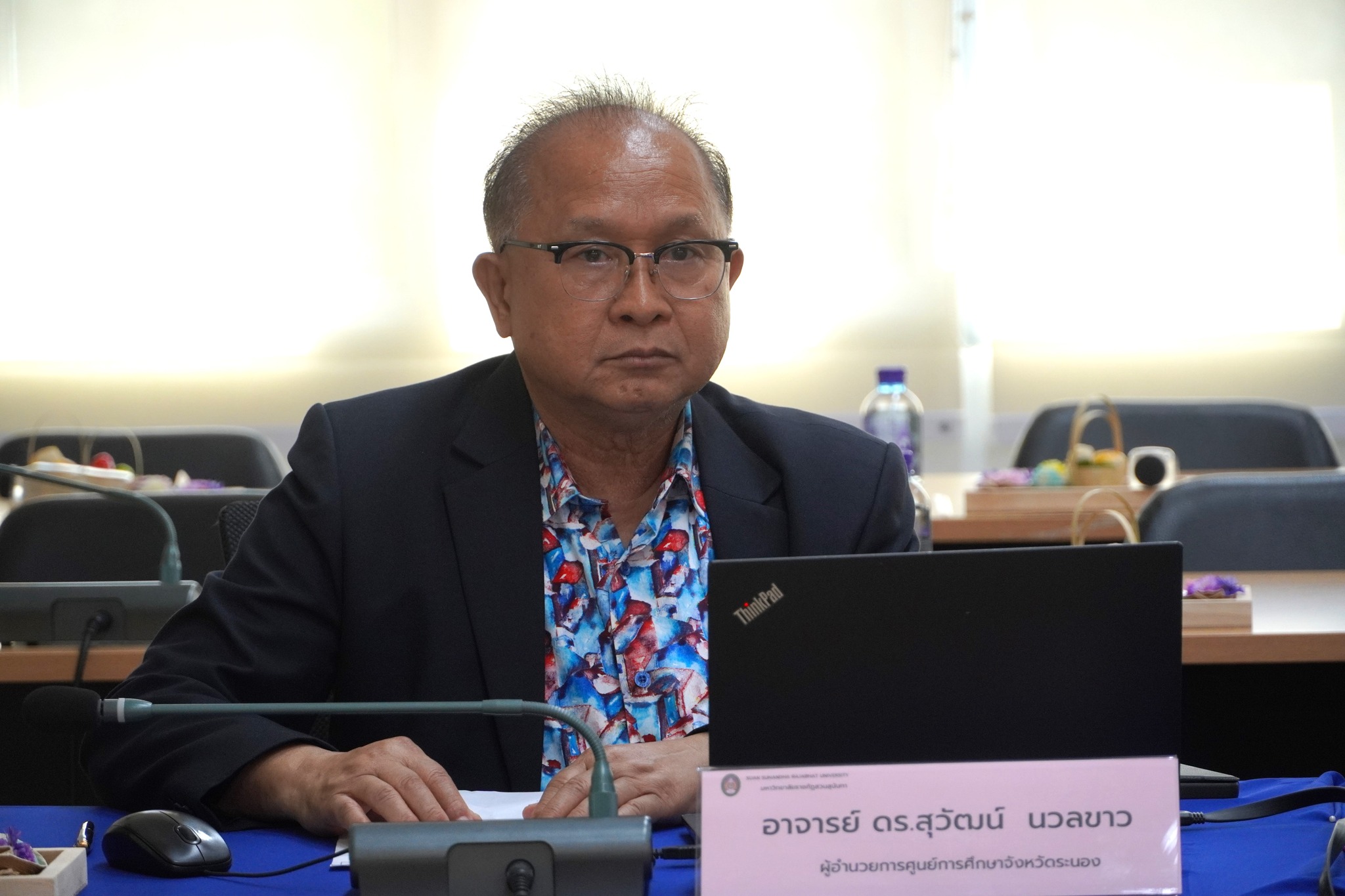 หลังจากนั้นคณะกรรมการส่งเสริมฯได้ประชุมคณะกรรมการส่งเสริมกิจการมหาวิทยาลัย วาระพิเศษ ครั้งที่ 1/2567 และได้ร่วมกันมอบครุภัณฑ์โต๊ะคอมพิวเตอร์พร้อมเก้าอี้ จำนวน ๗๐ ชุด ให้แก่ศูนย์การศึกษาจังหวัดระนองได้ใช้ประโยชน์ในการจัดการเรียนการสอนต่อไป