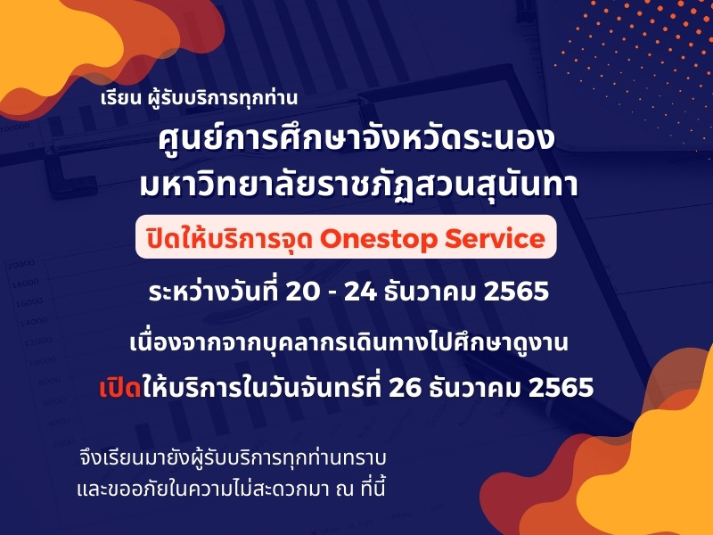 แจ้งปิดให้บริการ จุด Onestop Service ระหว่างวันที่ 20-24 ธันวาคม 2565
