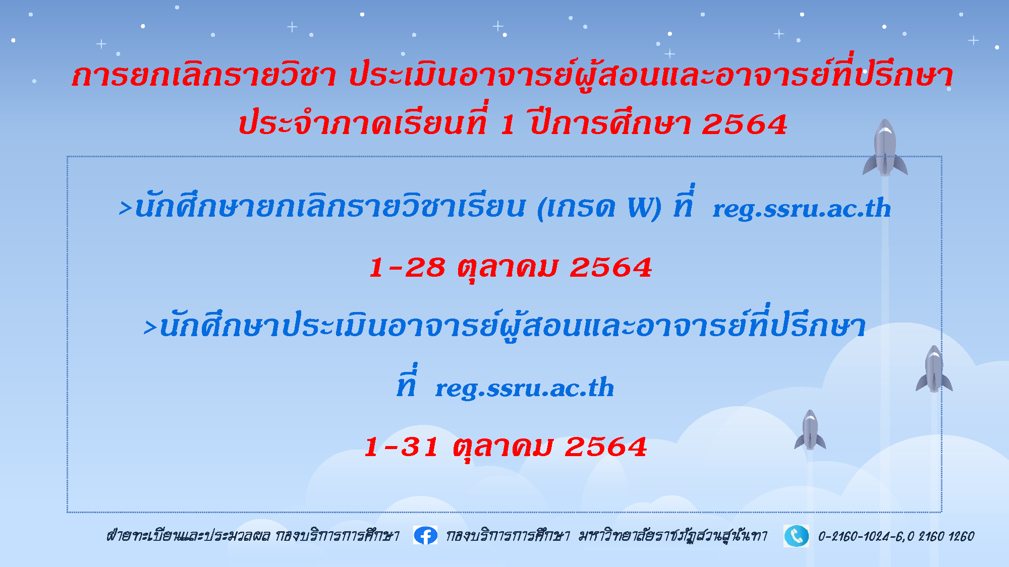 การยกเลิกรายวิชา ประเมินอาจารย์ผู้สอนและอาจารย์ที่ปรึกษา ประจำภาคเรียนที่ 1 ปีการศึกษา 2564