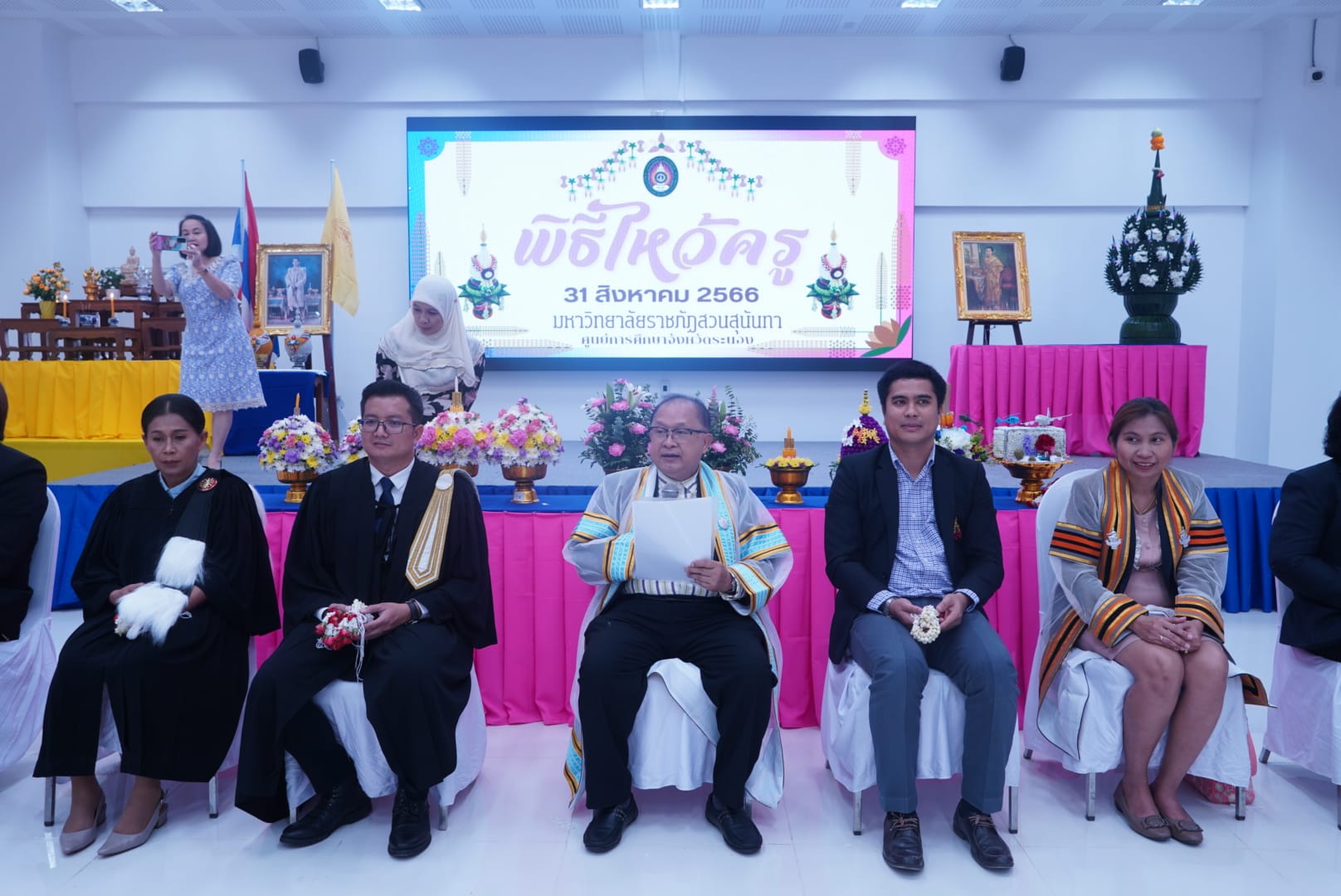 ช่วงเช้า วันนี้(31 ส.ค.66) อาจารย์ ดร.สุวัฒน์ นวลขาว ผู้อำนวยการศูนย์การศึกษาจังหวัดระนอง เป็นประธานในพิธีไหว้ครู ปีการศึกษา 2566 ณ ห้องประชุมชั้น 4 ศูนย์การศึกษาจังหวัดระนอง โดยมีคณาจารย์ และนักศึกษาเข้าร่วมโดยพร้อมเพรียงกัน