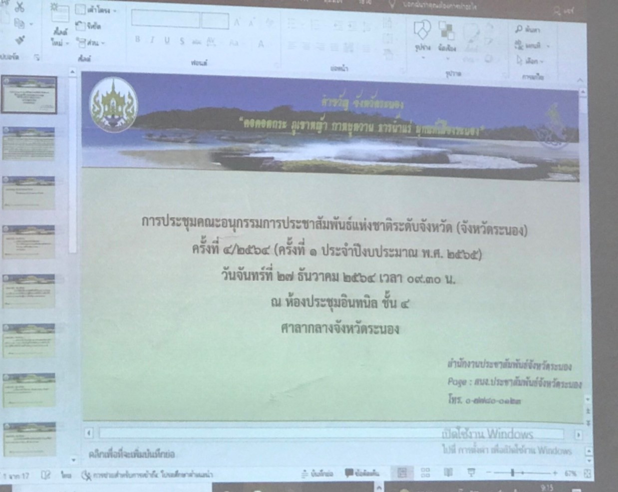 ช่วงเช้า วันที่ 27 ธันวาคม 2564 อาจารย์สุวัฒน์ นวลขาว ผู้อำนวยการศูนย์การศึกษาจังหวัดระนอง เข้าร่วมการคณะอนุกรรมการประชาสัมพันธ์แห่งชาติระดับจังหวัด ครั้งที่ 4/2564