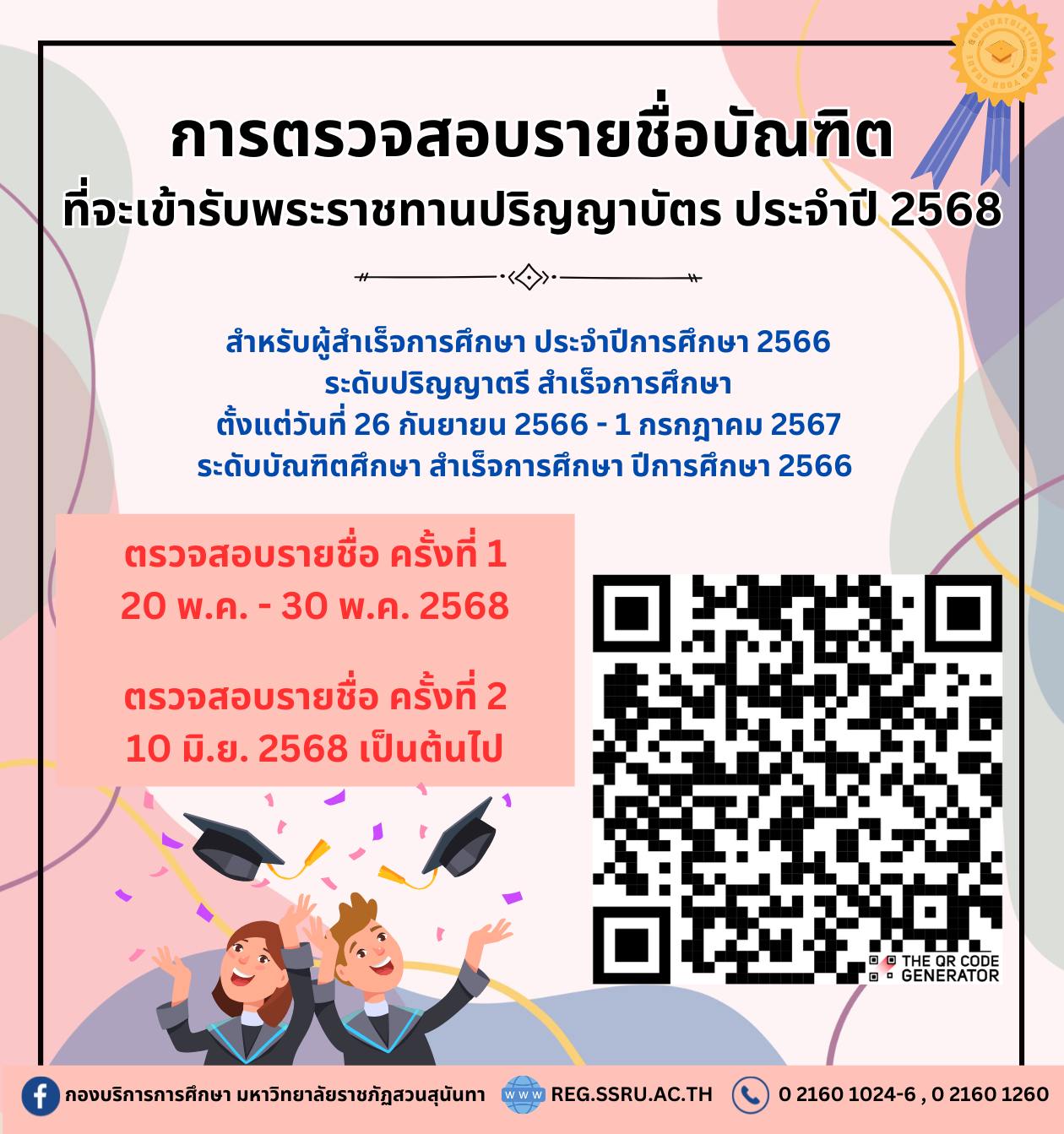 ได้ที่เว็บไซต์ https://ssru.ac.th/news-detail.php?id=1356