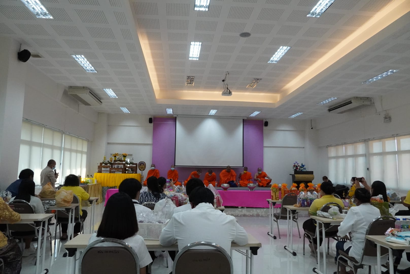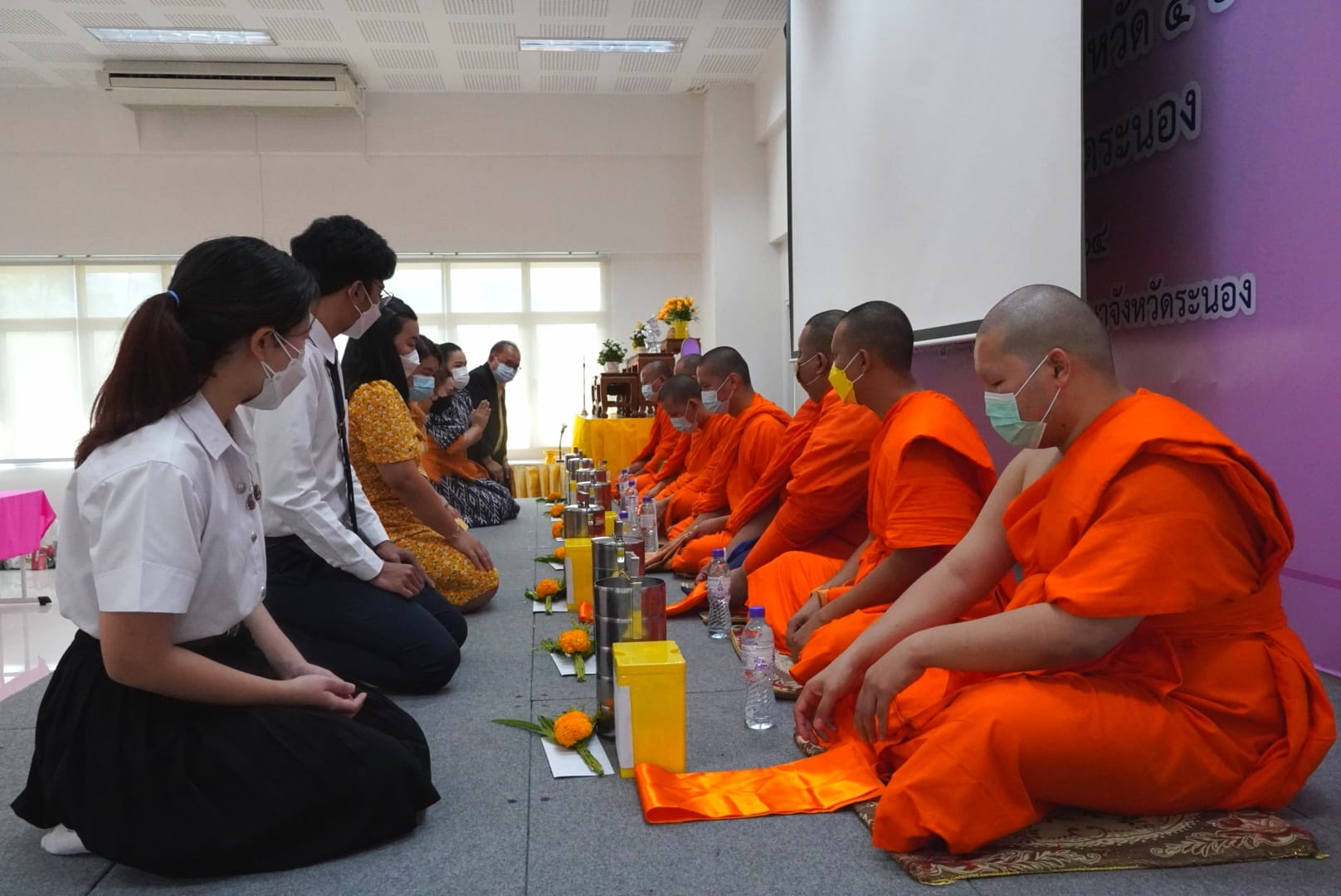 ช่วงเช้า วันจันทร์ที่ 27 ธันวาคม 2564 คณาจารย์ บุคลากร และนักศึกษาศูนย์การศึกษาจังหวัดระนองร่วมกิจกรรมทำบุญตักบาตรวันขึ้นปีใหม่ 2565 เพื่อเป็นการสร้างวัฒนธรรมอันดีงาม และเป็นศิริมงคลในวันขึ้นปีใหม่ ณ ห้องประชุมชั้น 4 ศูนย์การศึกษาจังหวัดระนอง โดยมีอาจารย์สุวัฒน์ นวลขาว ผู้อำนวยการศูนย์การศึกษาจังหวัดระนองเป็นประธาน
