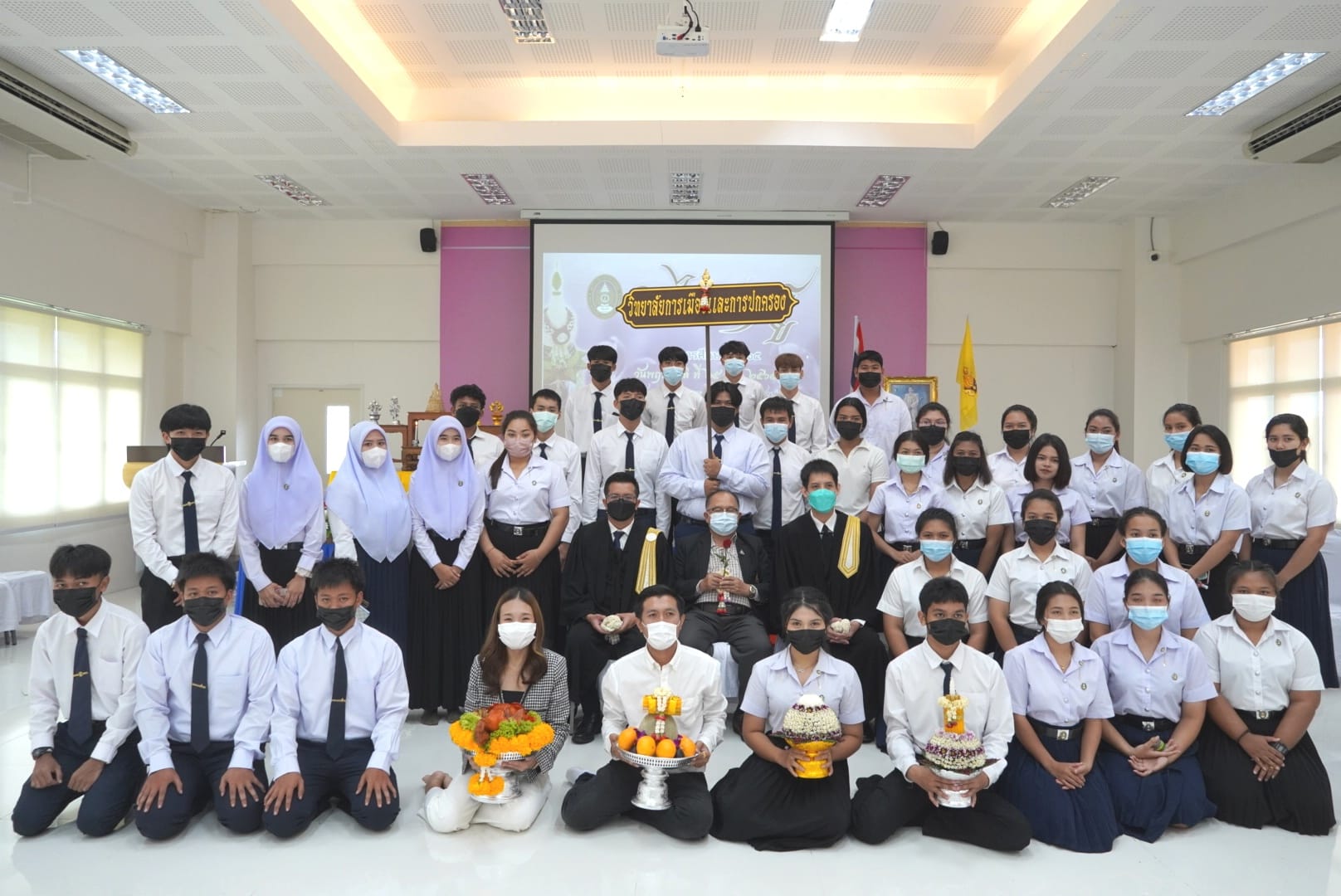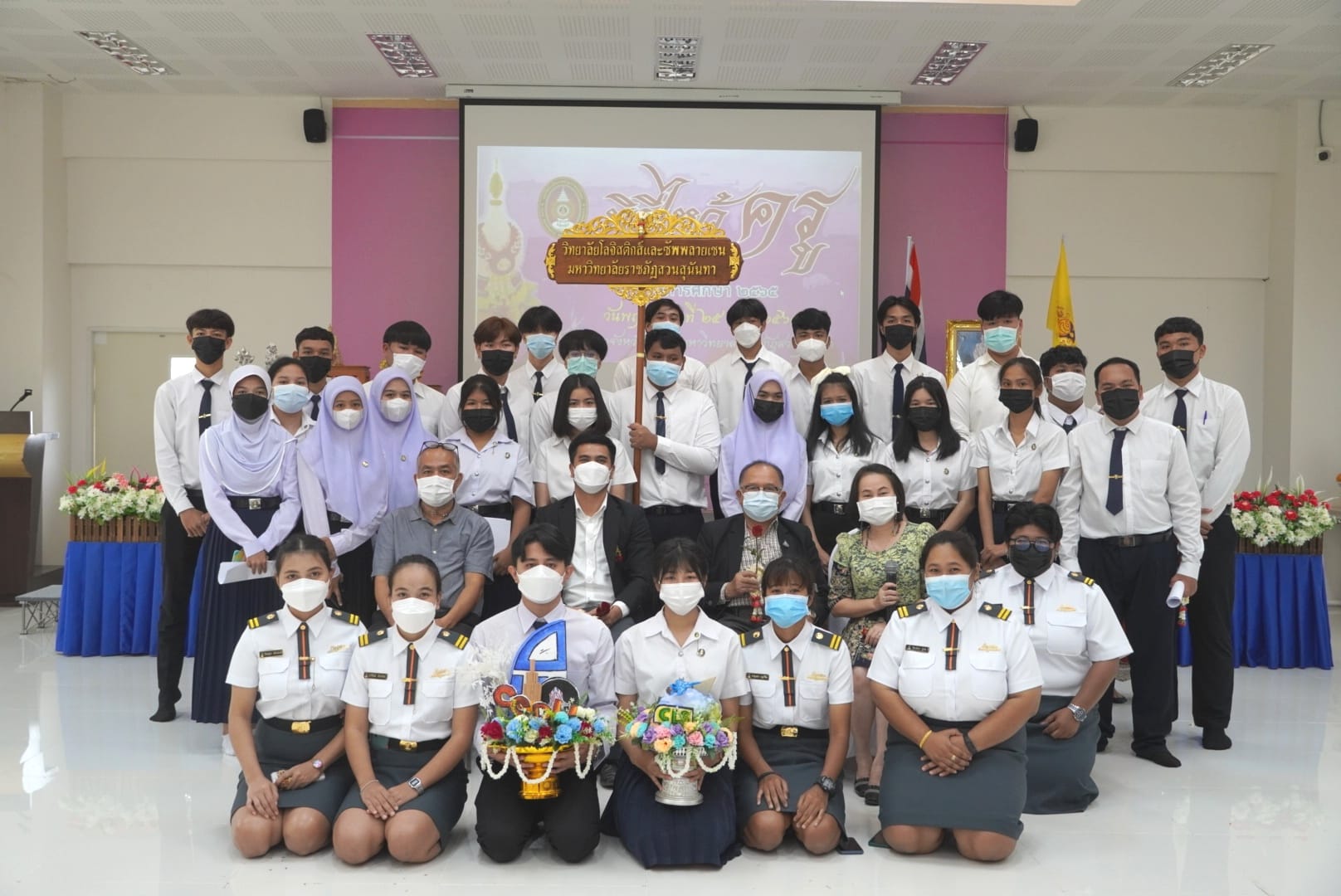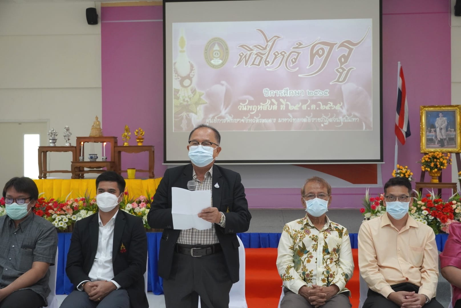 ช่วงเช้า  วันพฤหัสบดีที่  25  สิงหาคม 2565 ดร.สุวัฒน์ นวลขาว ผู้อำนวยการศูนย์การศึกษาจังหวัดระนอง เป็นประธานในพิธีไหว้ครู ประจำปีการศึกษา 2565 ณ  ห้องประชุม A401  โดยมีคณาจารย์ และนักศึกษาจาก 4 วิทยาลัย คือ วิทยาลัยโลจิสติกส์และซัพพลายเชน  วิทยาลัยการเมืองและการปกครอง  วิทยาลัยอุตสาหกรรมบริการ  และวิทยาลัยนวัตกรรมและการจัดการเข้าร่วมในพิธี  โดยบรรยากาศภายในงานเป็นไปด้วยความอบอุ่น