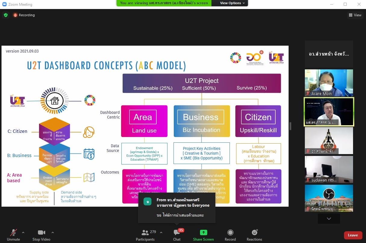 ช่วงเช้า วันที่ 28 ตุลาคม 2564 นางอัญชัญ จงเจริญ ที่ปรึกษาผู้อำนวยการศูนย์การศึกษาจังหวัดระนอง และผู้ที่เกี่ยวข้อง ได้รับมอบหมาายจากผู้อำนวยการศูนย์ฯ เข้าร่วมการประชุมอบรมการใช้และวิเคราะห์ข้อมูลระบบ Community Big Data :CBD และ ABC Model ภายใต้โครงการยกระดับเศรษฐกิจและสังคมรายตำบลแบบบูรณาการ (มหาวิทยาลัยสู่ตำบล สร้างรากแก้วให้ประเทศ U2T) โดยการอบรมครั้งนี้มีผู้เข้าร่วมอบรมคือหน่วยปฏิบัติการ อว ส่วนหน้า ประจำจังหวัด จำนวน 72 จังหวัด