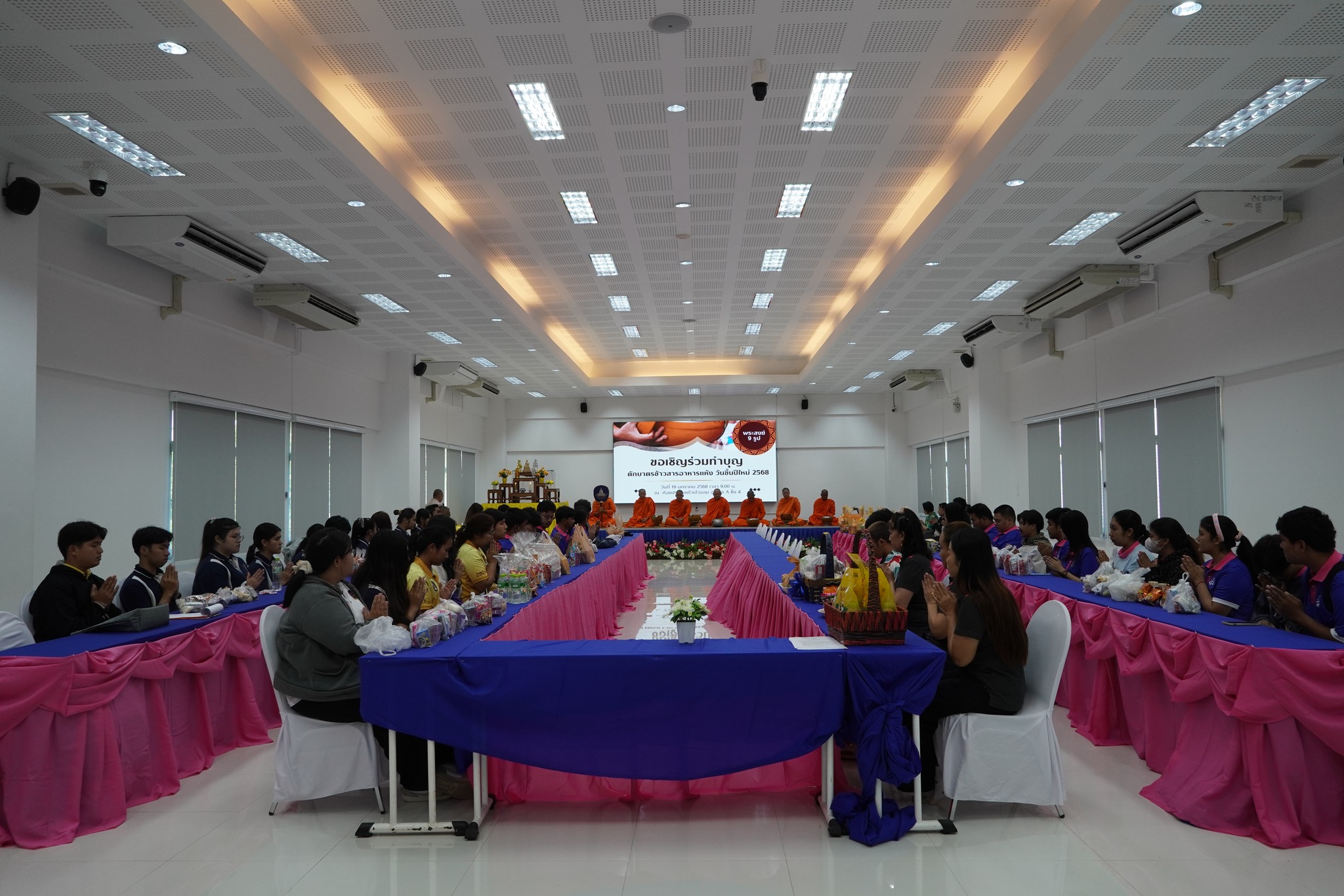 ช่วงเช้า วันที่ 19 มกราคม 2568 อาจารย์ ดร.สุวัฒน์ นวลขาว ผู้อำนวยการศูนย์การศึกษาจังหวัดระนอง เป็นประธานในพิธีทำบุญตักบาตรข้าวสารอาหารแห้ง วันขึ้นปีใหม่ 2568 ณ ห้องประชุมแก้วเจ้าจอม ศูนย์การศึกษาจังหวัดระนอง อำเภอเมืองระนอง จังหวัดระนอง