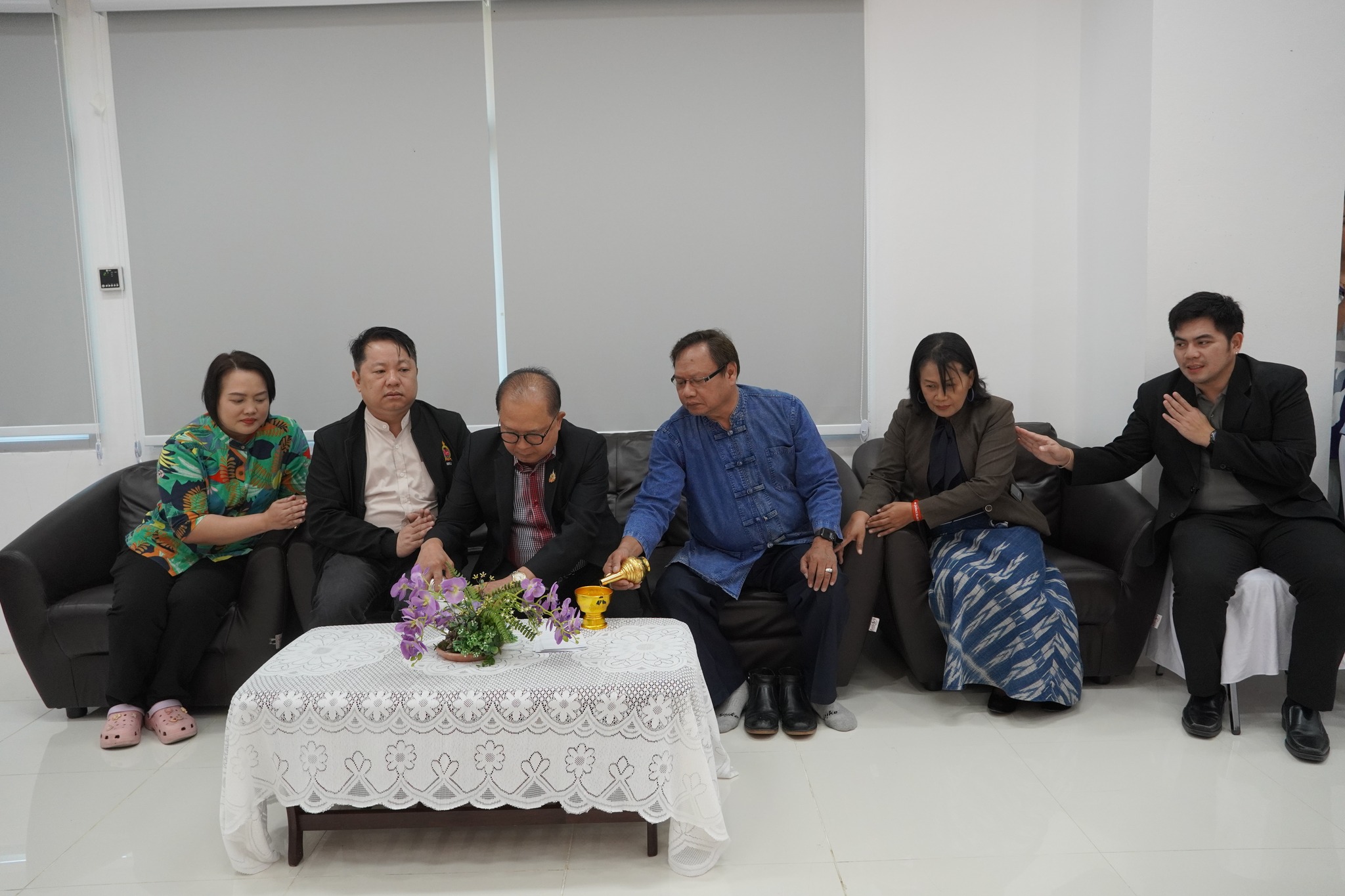 โดยมีคณาจารย์จากวิทยาลัยการเมืองและการปกครอง คือ อาจารย์ ดร.สัณหณัฐ จักรภัทรวงศ์ หัวหน้าสาขารัฐศาสตร์ (การศึกษาทางไกล) อาจารย์ธิดา นิติธรญาดา และอาจารย์ภูชิชย ภูริสิริกุล อาจารย์ประจำสาขาวิชานิติศาสตร์ รศ.ดร.ไชยวัฒน์ เผือกคง และอาจารย์อรวรรณ อินสตูล อาจารย์ประจำสาขารัฐศาสตร์ พร้อมด้วยบุคลากร และนักศึกษาเข้าร่วมพิธี