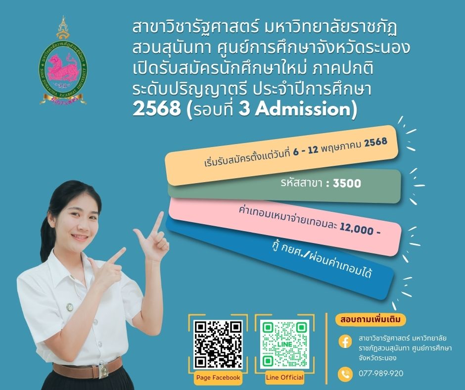 **เกณฑ์การคัดเลือก ภาคปกติ ระดับปริญญาตรี ประจำปีการศึกษา 2568 (รอบที่ 3 Admission) คลิกที่นี่ https://admission.ssru.ac.th/isqy03