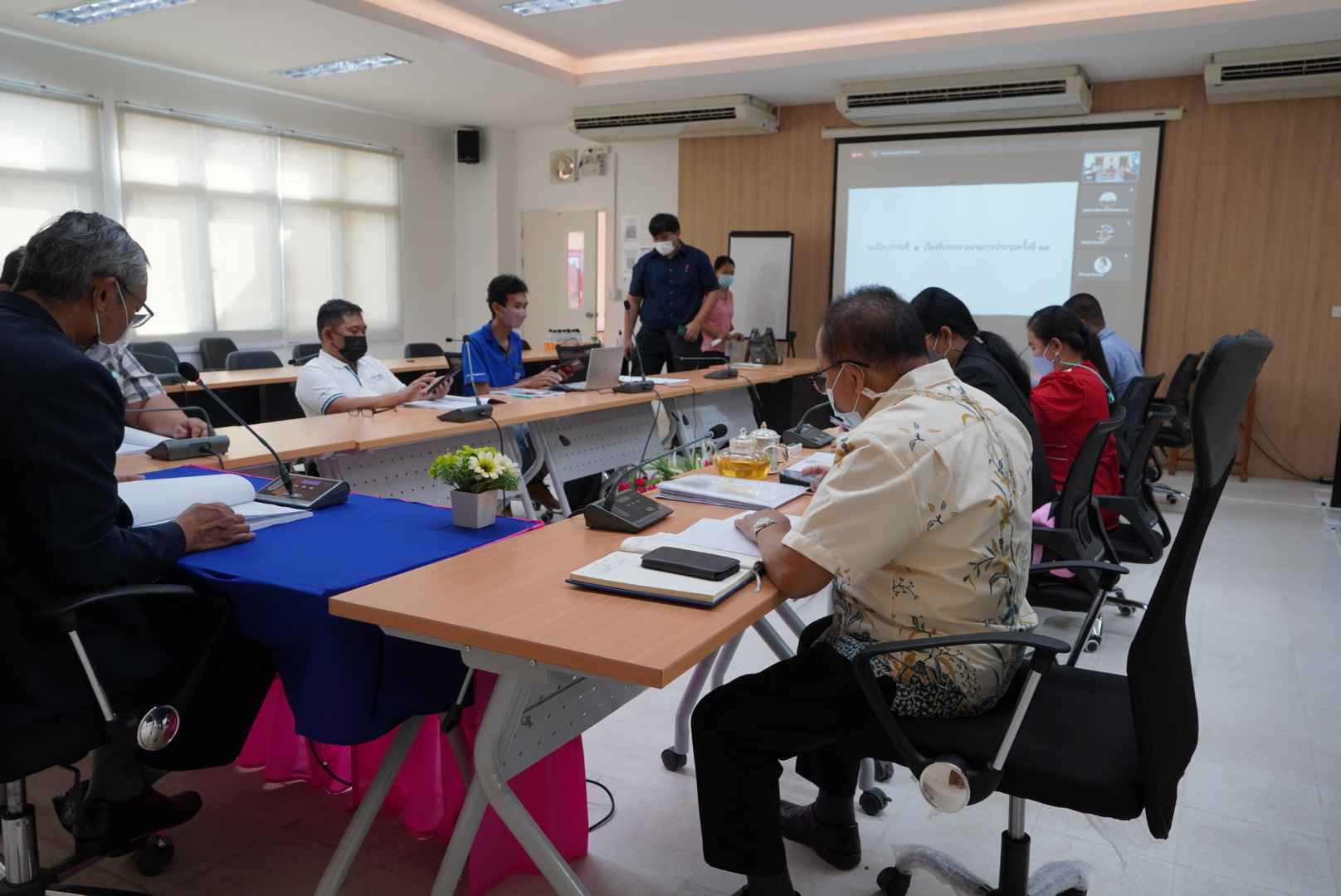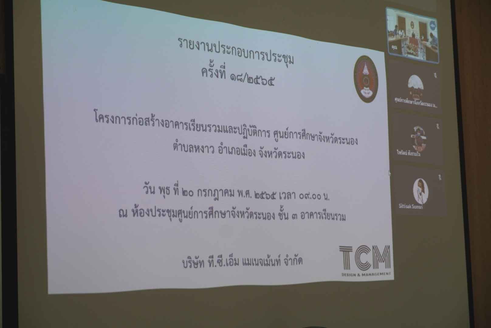 ช่วงเช้า วันที่ 20 กรกฎาคม 2565 รศ.ดร.วิทยา เมฆขำ รองอธิการบดีฝ่ายแผนงานและประกันคุณภาพ เป็นประธานในการประชุมโครงการก่อสร้างอาคารเรียนรวมและปฏิบัติการ ศูนย์การศึกษาจังหวัดระนอง ครั้งที่ 18/2565 ณ ห้องประชุม A306 ศูนย์การศึกษาจังหวัดระนอง โดยมีดร.สุวัฒน์ นวลขาว ผู้อำนวยการศูนย์การศึกษาจังหวัดระนอง นางสาววนัสนาฏ ประพาลา รักษาการหัวหน้าสำนักงานฯและผู้ที่เกี่ยวข้องเข้าร่วมประชุม ณ ที่ตั้งและผ่านทางระบบออนไลน์