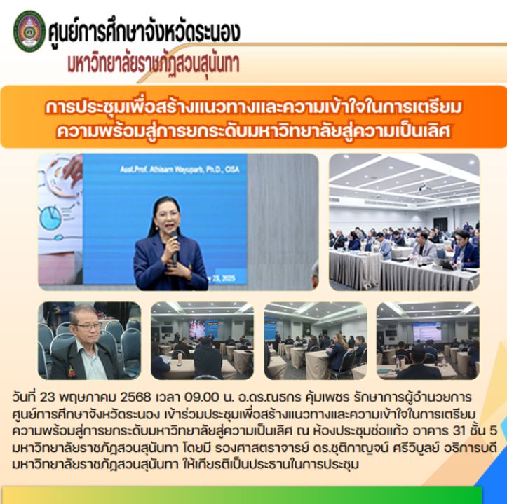 การประชุมเพื่อสร้างแนวทางและความเข้าใจในการเตรียมความพร้อมสู่การยกระดับมหาวิทยาลัยสู่ความเป็นเลิศ