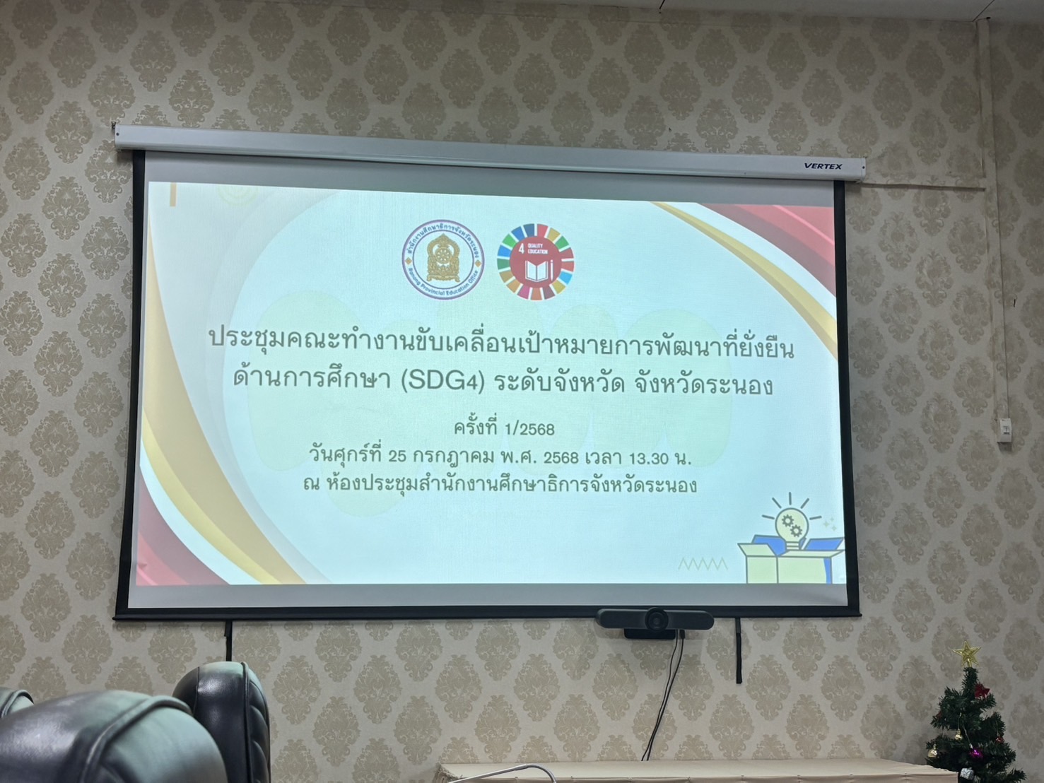 วันที่ 25 กรกฎาคม 2568 นางสาวณิชชา บุญประสพ เจ้าหน้าที่บริหารงานทั่วไป ได้รับมอบหมายจากอาจารย์ ดร.ณธกร คุ้มเพชร รักษาการในตำแหน่งผู้อำนวยการศูนย์การศึกษาจังหวัดระนอง เข้าร่วมประชุมคณะทำงานขับเคลื่อนเป้าหมายการพัฒนาที่ยั่งยืนด้านการศึกษาระดับจังหวัด จังหวัดระนอง ณ ห้องประชุมสำนักงาน สกสค. จังหวัดระนอง โดยมีนางสาวรัชนี จิตต์สว่าง รองศึกษาธิการจังหวัดระนอง เป็นประธาน