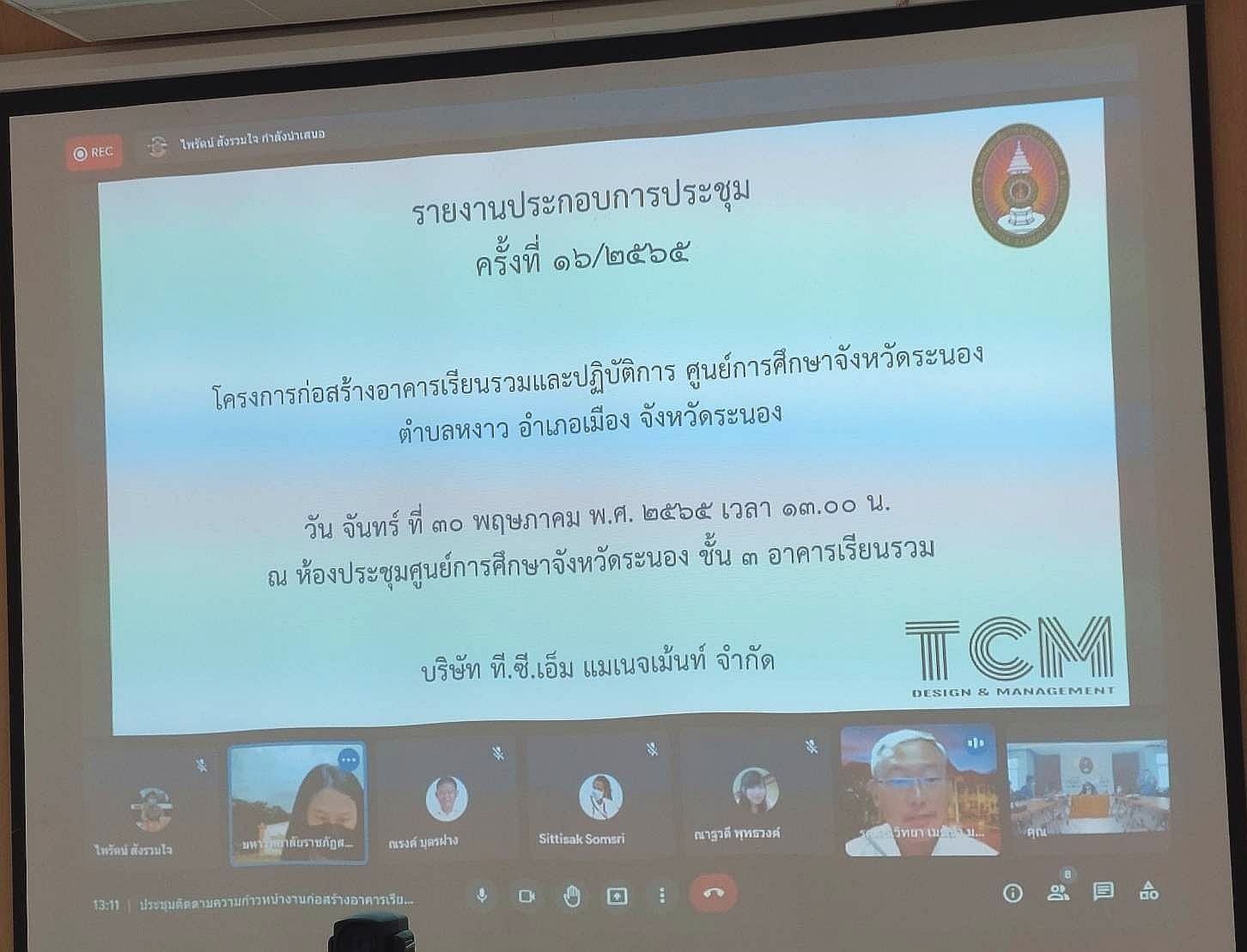 ช่วงบ่าย วันที่ 30 พฤษภาคม 2565 ดร.สุวัฒน์ นวลขาว ผู้อำนวยการศูนย์การศึกษาจังหวัดระนอง เข้าร่วมการประชุมคณะกรรมการตรวจการจ้าง ครั้งที่ 16 ติดตามความก้าวหน้างานก่อสร้างอาคารเรียนรวมและปฏิบัติการ ณ ห้องประชุม A306 ศูนย์การศึกษาจังหวัดระนอง โดยมีรศ.ดร.วิทยา เมฆขำ รองอธิการบดีฝ่ายแผนงานและประกันคุณภาพเป็นประธาน