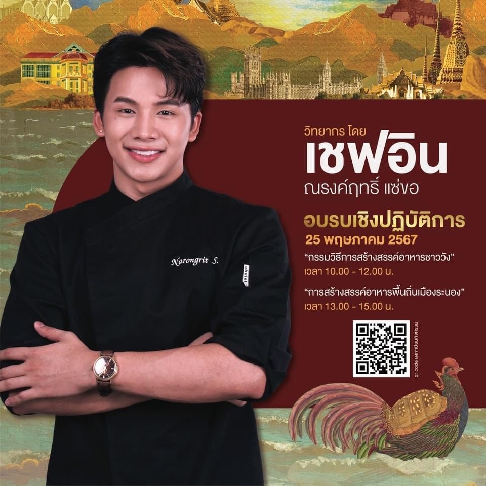 ๒. อบรมเชิงปฏิบัติการ “กระบวนการสร้างสรรค์อาหารชาววัง” และ “การสร้างสรรค์อาหารพื้นถิ่นเมืองระนอง” วิทยากร โดย คุณณรงค์ฤทธิ์ แซ่ขอ (เชฟอิน อินฟลูเอนเซอร์ด้านอาหาร) ลงทะเบียนเข้าร่วมกิจกรรมได้ที่ https://forms.gle/TzeK7xySNoQvrRHX6