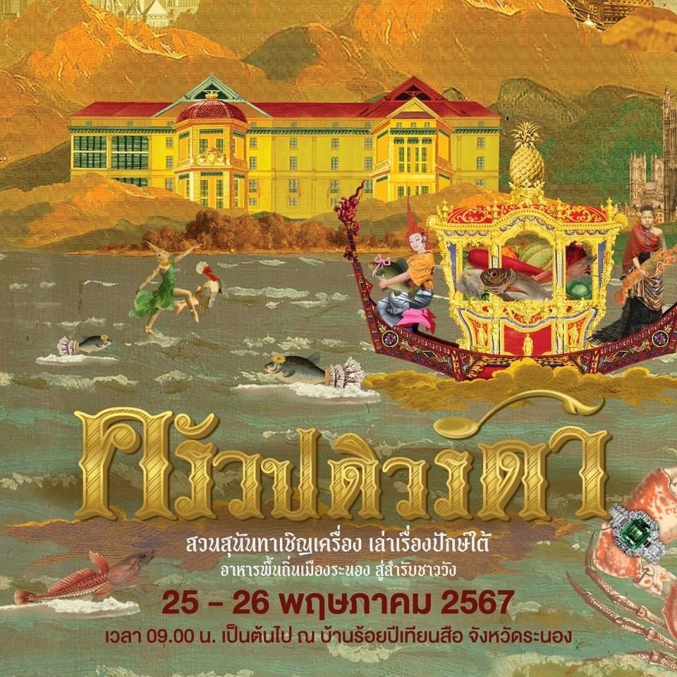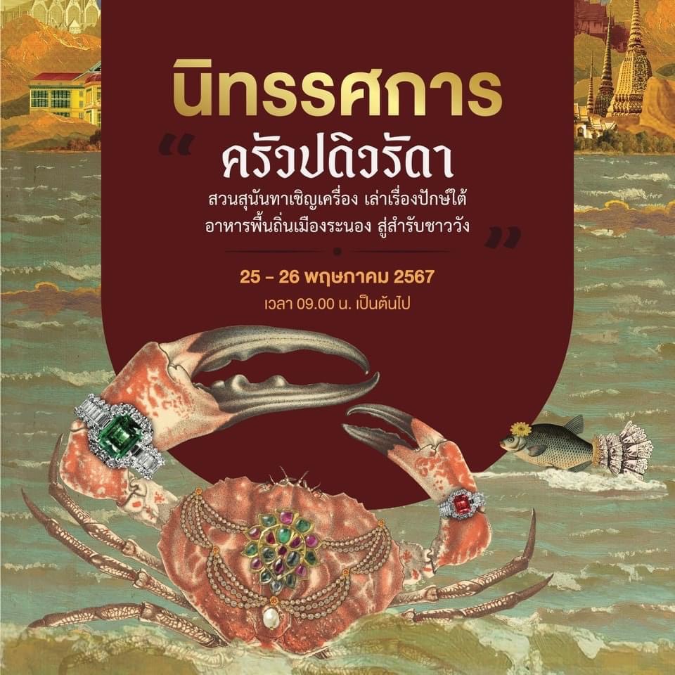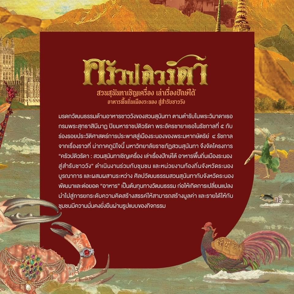 ๑. นิทรรศการ “ครัวปดิวรัดา: สวนสุนันทาเชิญเครื่อง เล่าเรื่องปักษ์ใต้ อาหารพื้นถิ่นเมืองระนอง สู่สำรับชาววัง”