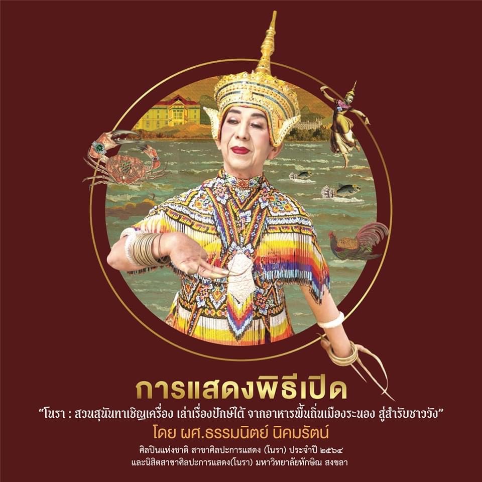 ๓. พิธีเปิดโครงการฯ และการแสดงโนรา จาก ผู้ช่วยศาสตราจารย์ธรรมนิตย์ นิคมรัตน์ ศิลปินแห่งชาติสาขาศิลปะการแสดง (โนรา) ประจำปี ๒๕๖๔ และนิสิตสาขาศิลปะการแสดง มหาวิทยาลัยทักษิณ สงขลา