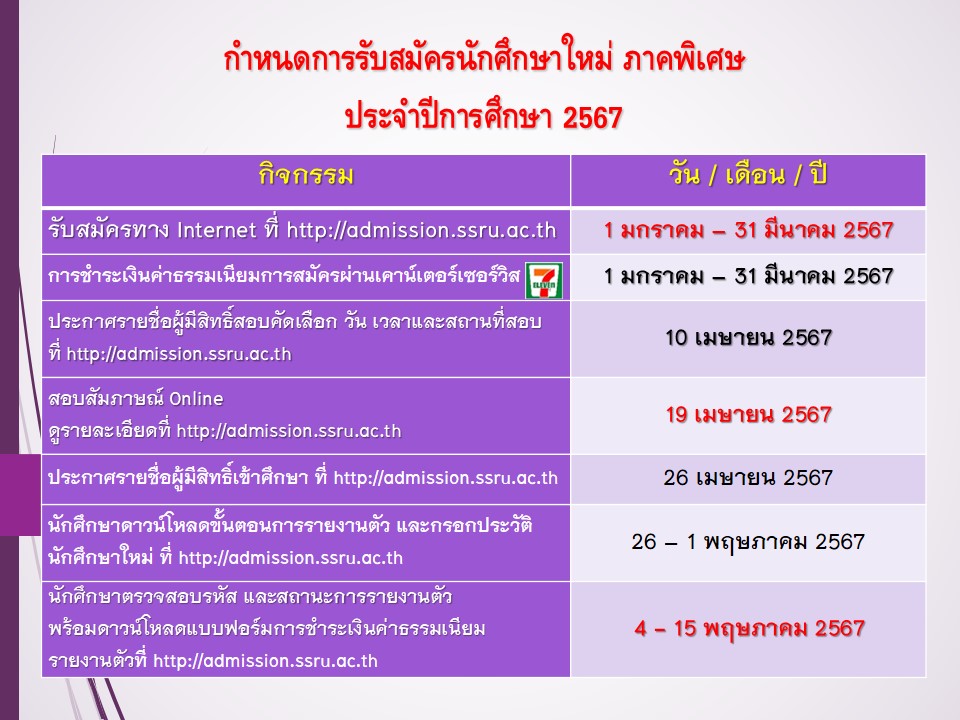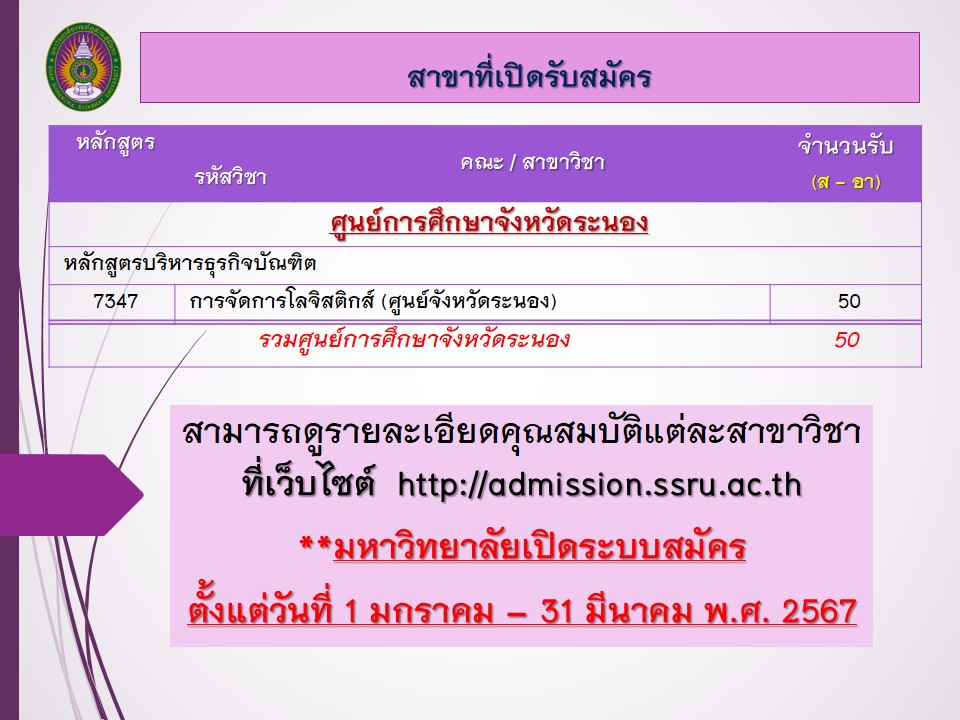#ประกาศรับสมัคร คลิกที่นี่ https://cts.ssru.ac.th/File/IS/Announce/Files/pcvvyhu0.pdf